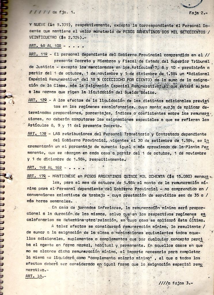 Que por el mismo se establecen los sueldos resultantes de los porcentajes de aumentos a partir del 1º de Octubre, 1º de Noviembre y 1º de Diciembre del cte. Año.