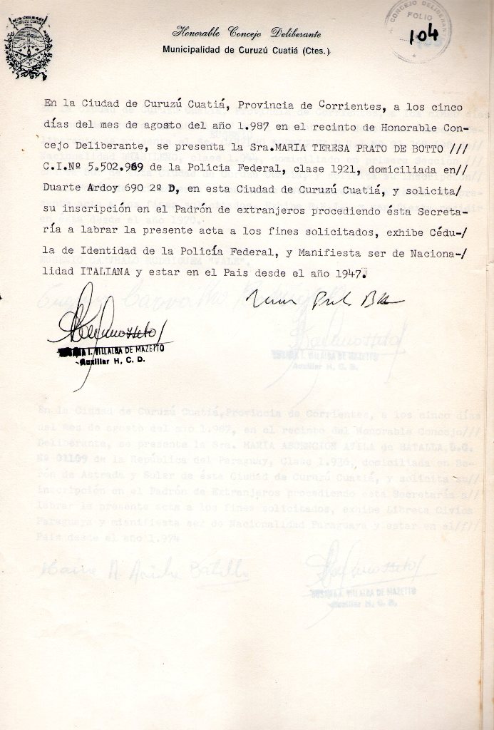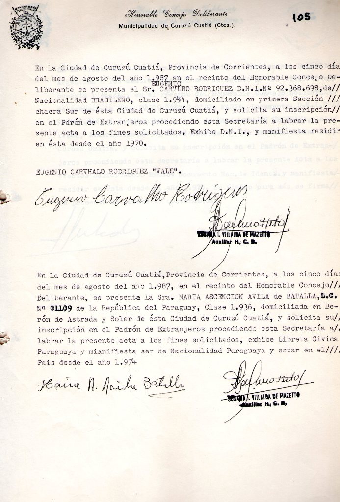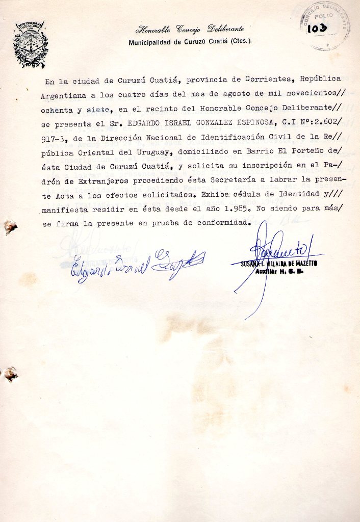 LA MUNICIPALIDAD DE CURUZU CUATIA REUNIDA EN CONCEJO