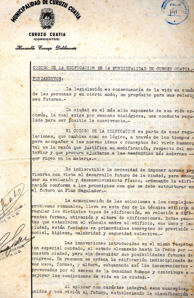 Art.1º.- APRUEBESE el CODIGO DE LA EDIFICACION DE LA CIUDAD DE CURUZU CUATIA, cuyo Texto forma parte integrante de la presente como ANEXO I.