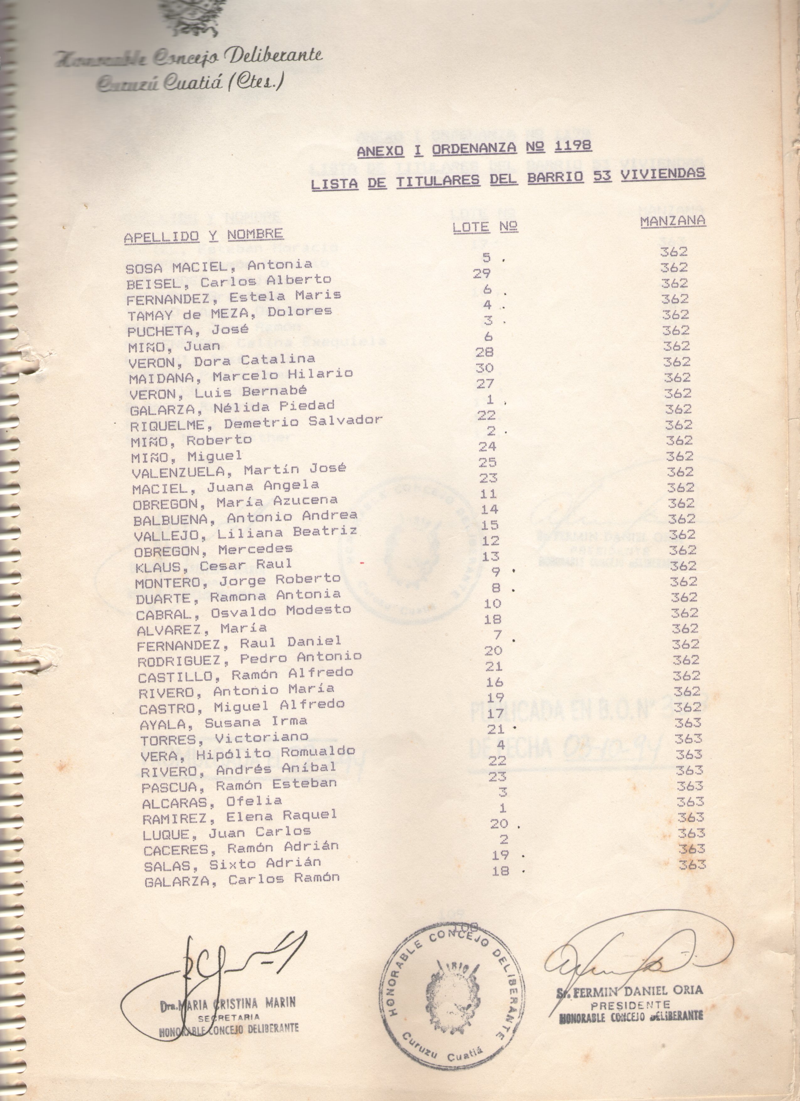 ORDENANZA N° 1198