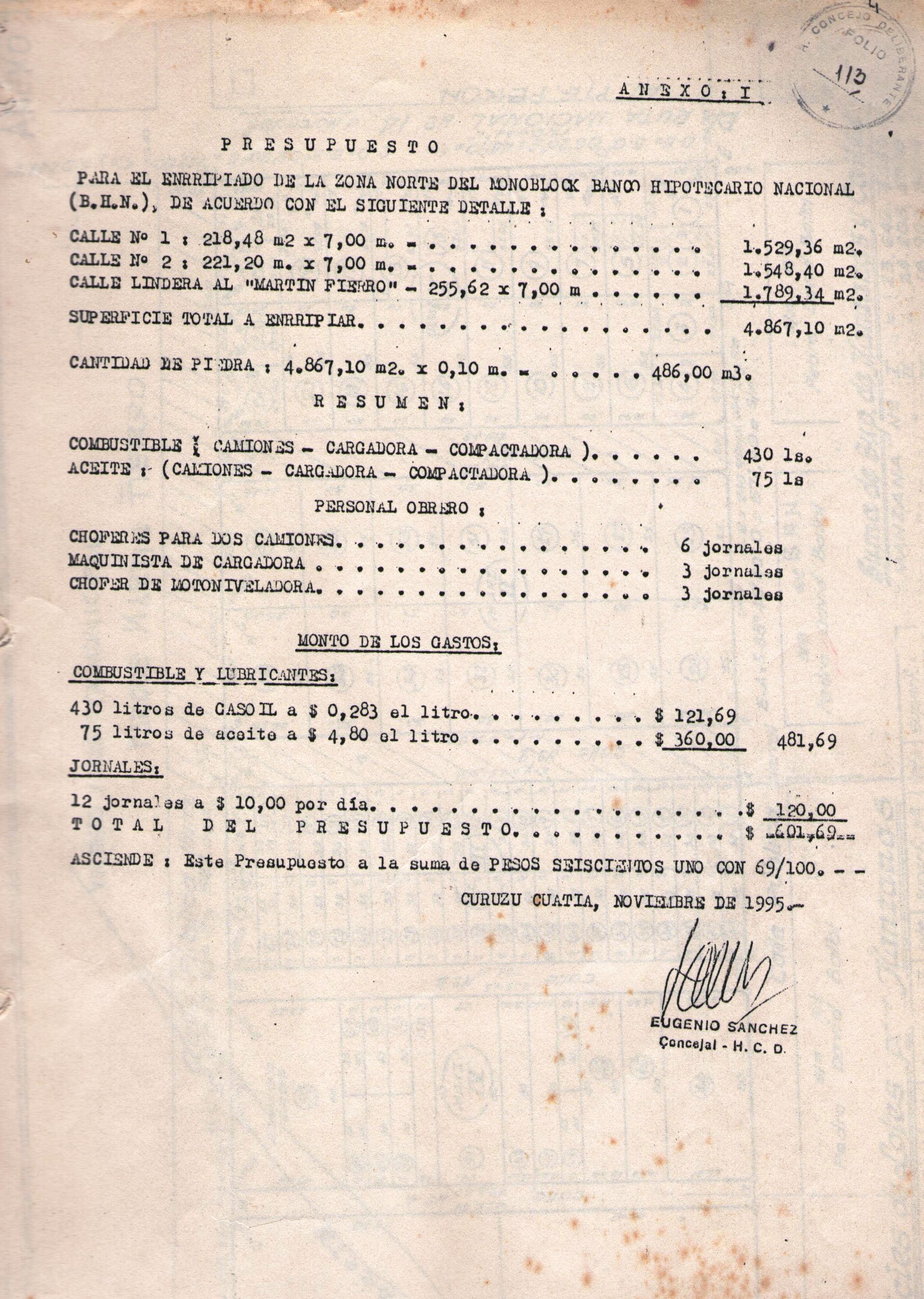 Art.3º.- SE ADJUNTA Presupuesto del transporte de la piedra o ripio y su posterior compactación que corre agregado como ANEXO I y que forma parte integrante de la presente.-