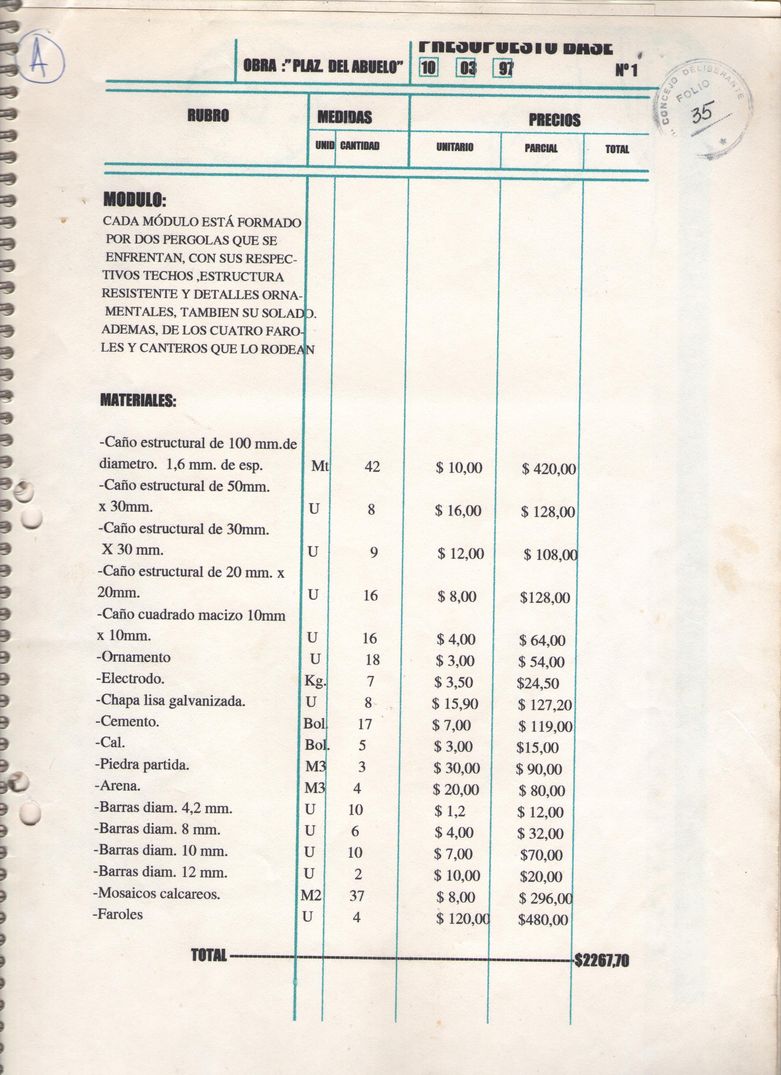 Art.3°.- IMPUTASE a la cuenta 2.3.2.7. –obras varias del rubro 2.3 erogaciones de Capital del Presupuesto del Departamento Ejecutivo del año 1997, el presupuesto que se adjunta como anexo N°2 y que forma parte de la presente.-