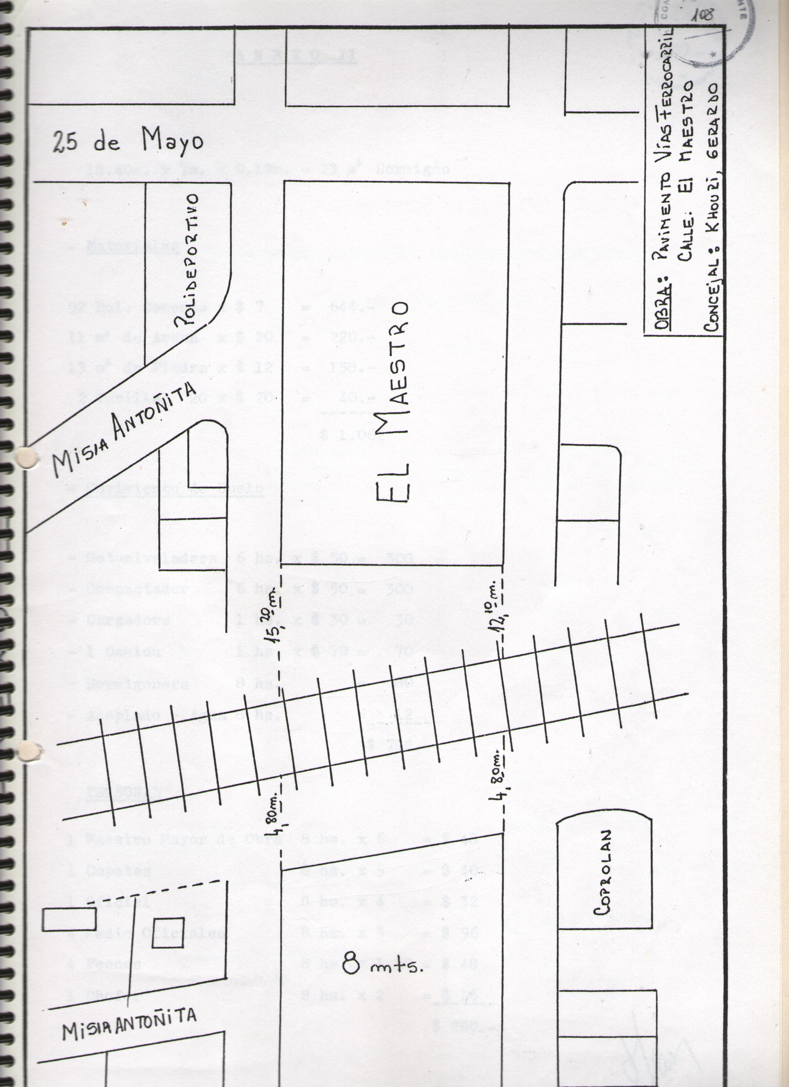 Art.1º.- AUTORIZAR al departamento Ejecutado Municipio a construir pavimento – hormigón, en la calle EL MAESTRO, a ambos lados de las vías del ferrocarril, cuyo croquis corre agregado como anexo I.-