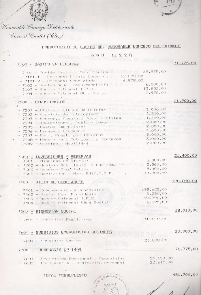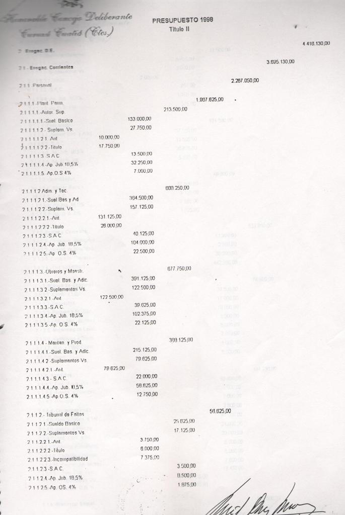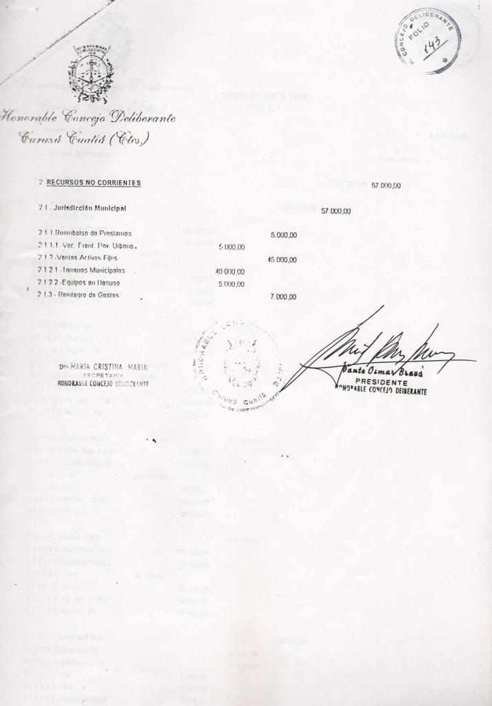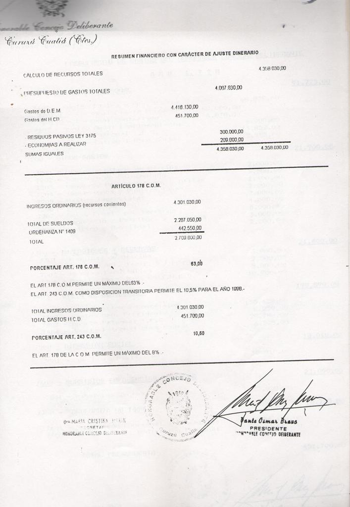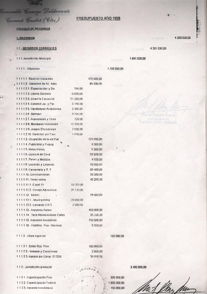 Art.1º.- APRUEBASE el PRESUPUESTO GENERAL DE GASTOS Y CALCULO DE RECURSOS de la Municipalidad de Curuzú Cuatia, correspondiente al año 1998, que obran como ANEXOX I Y II e integran la presente.