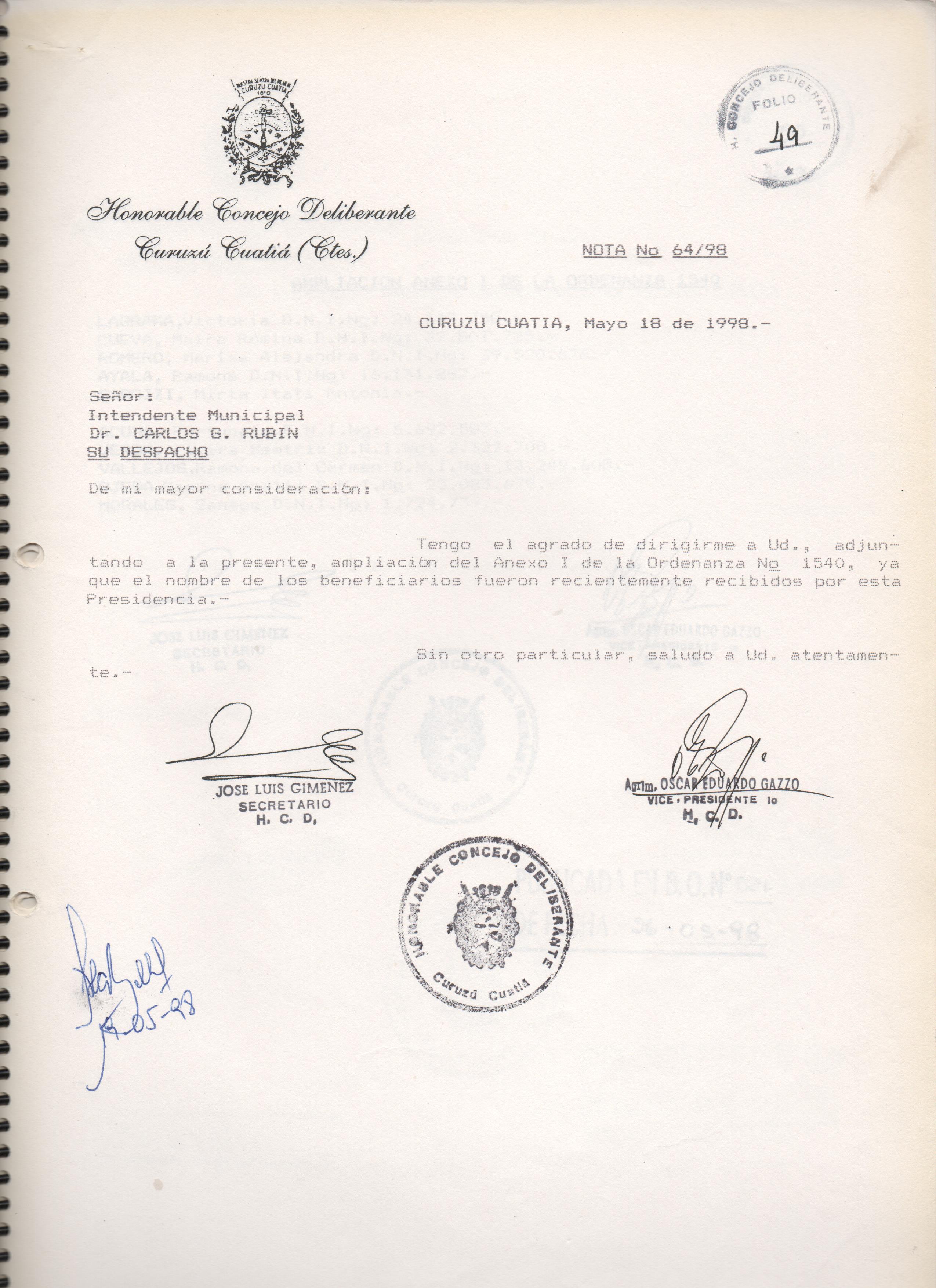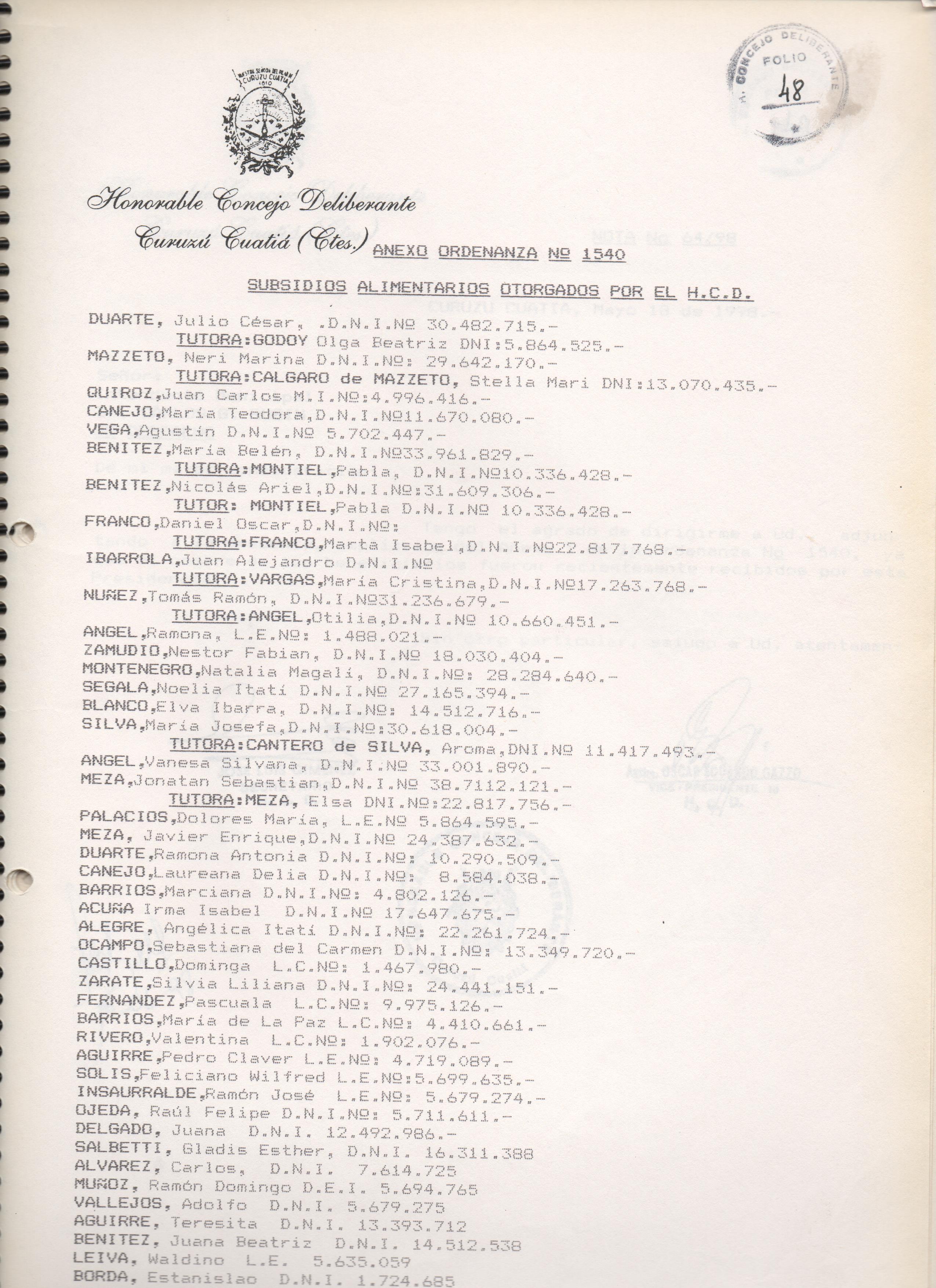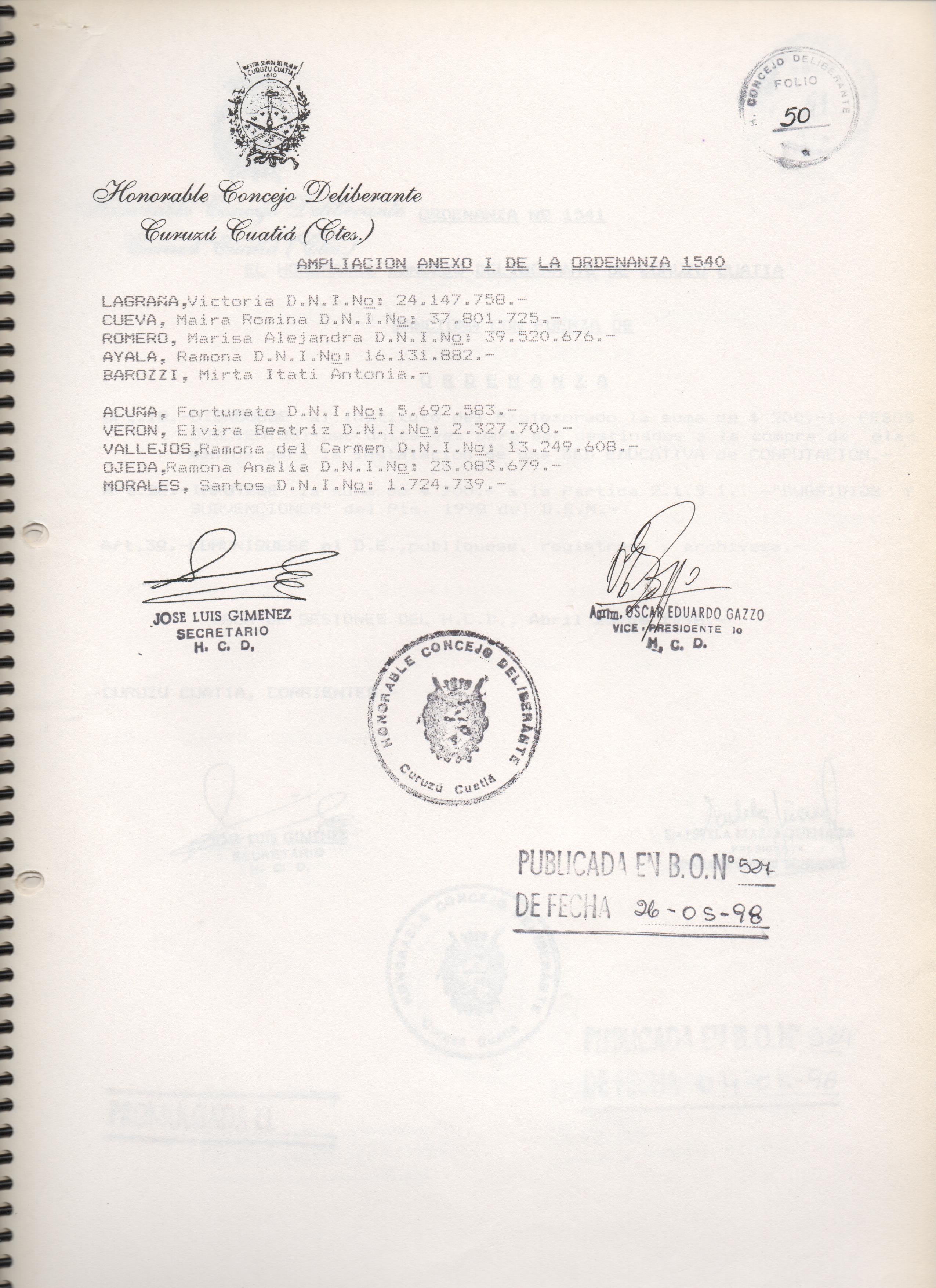 ORDENANZA Nº 1540
