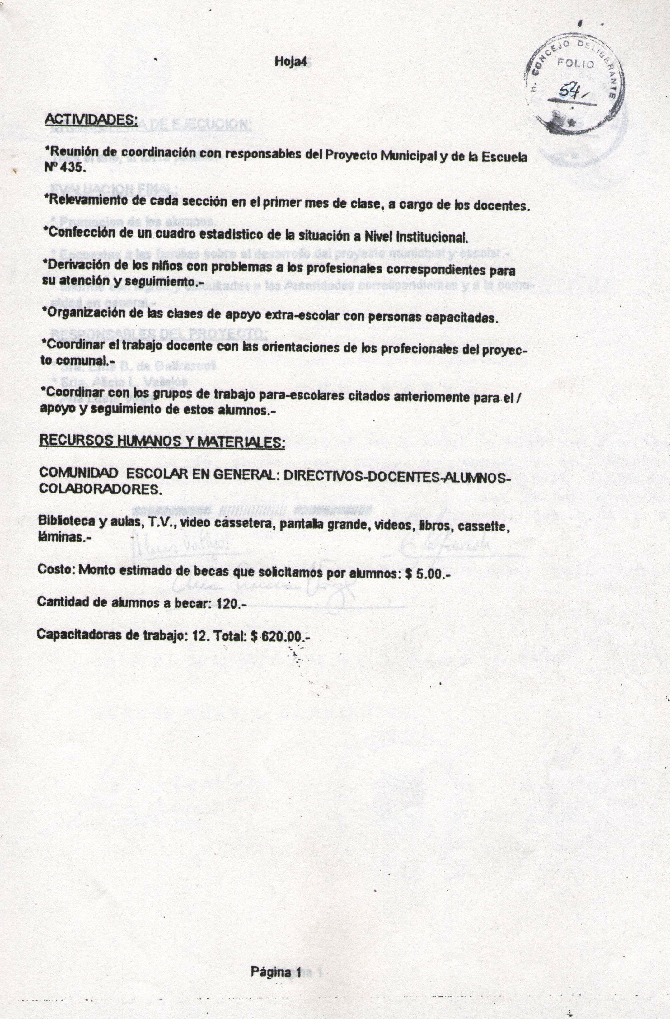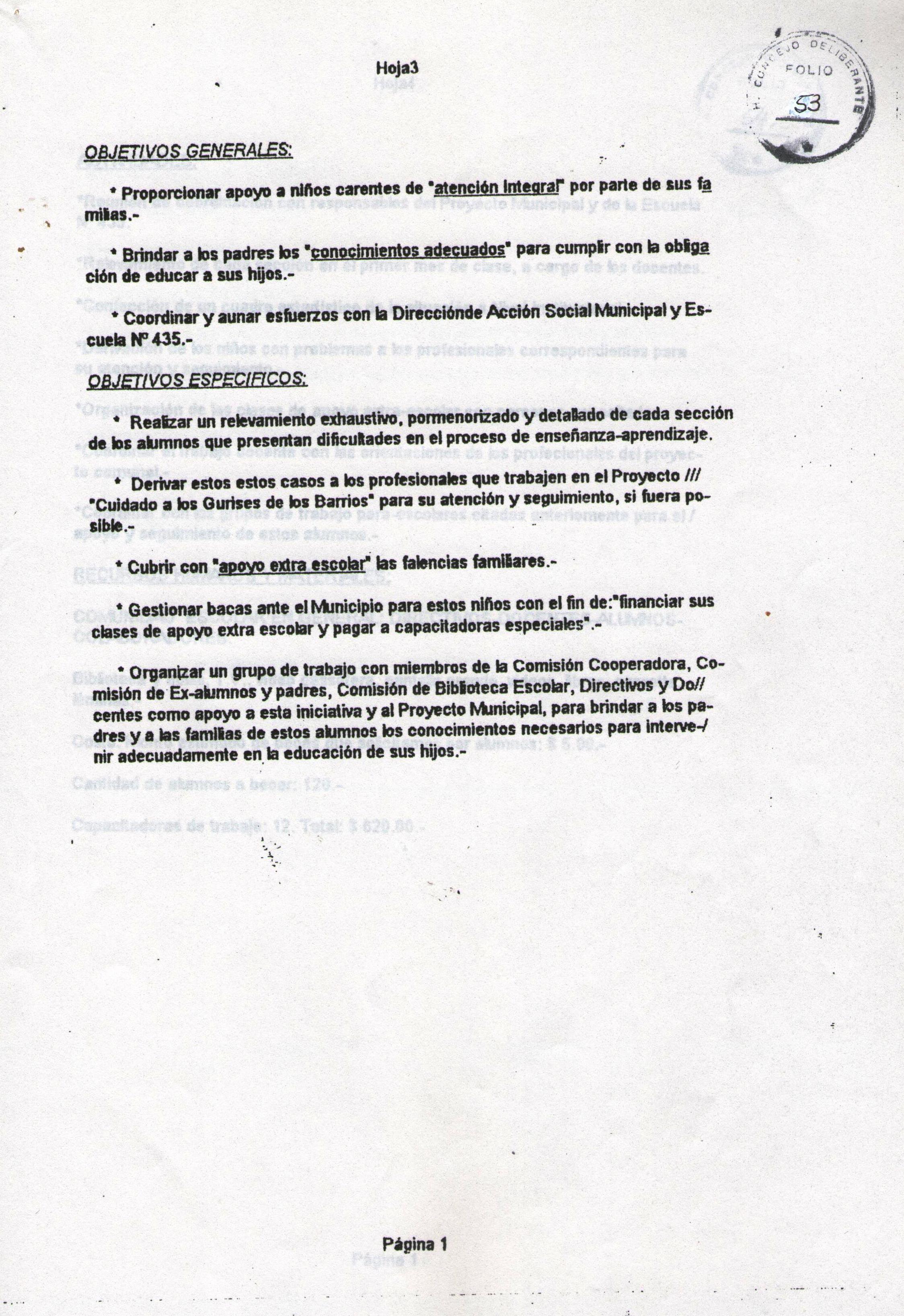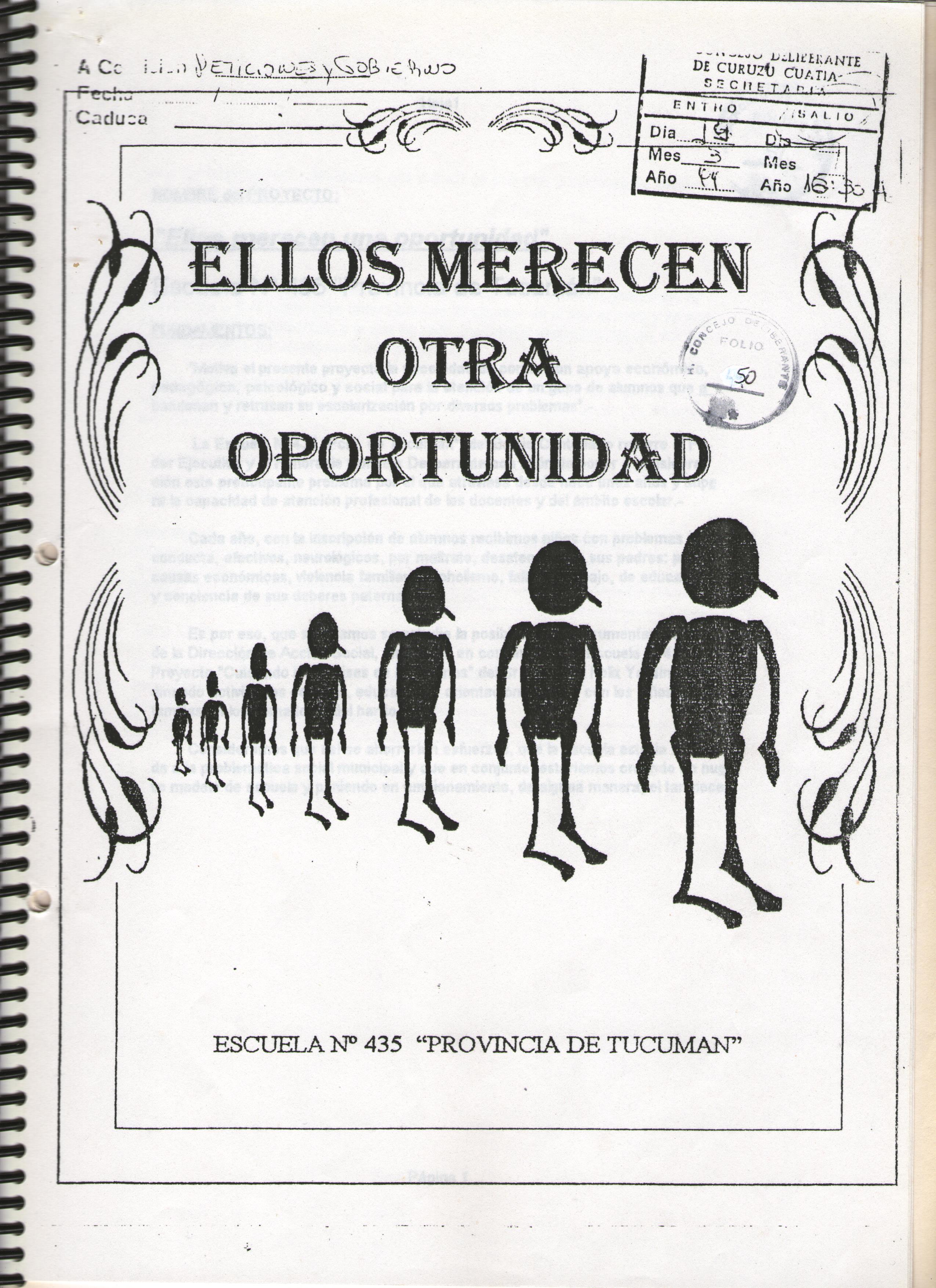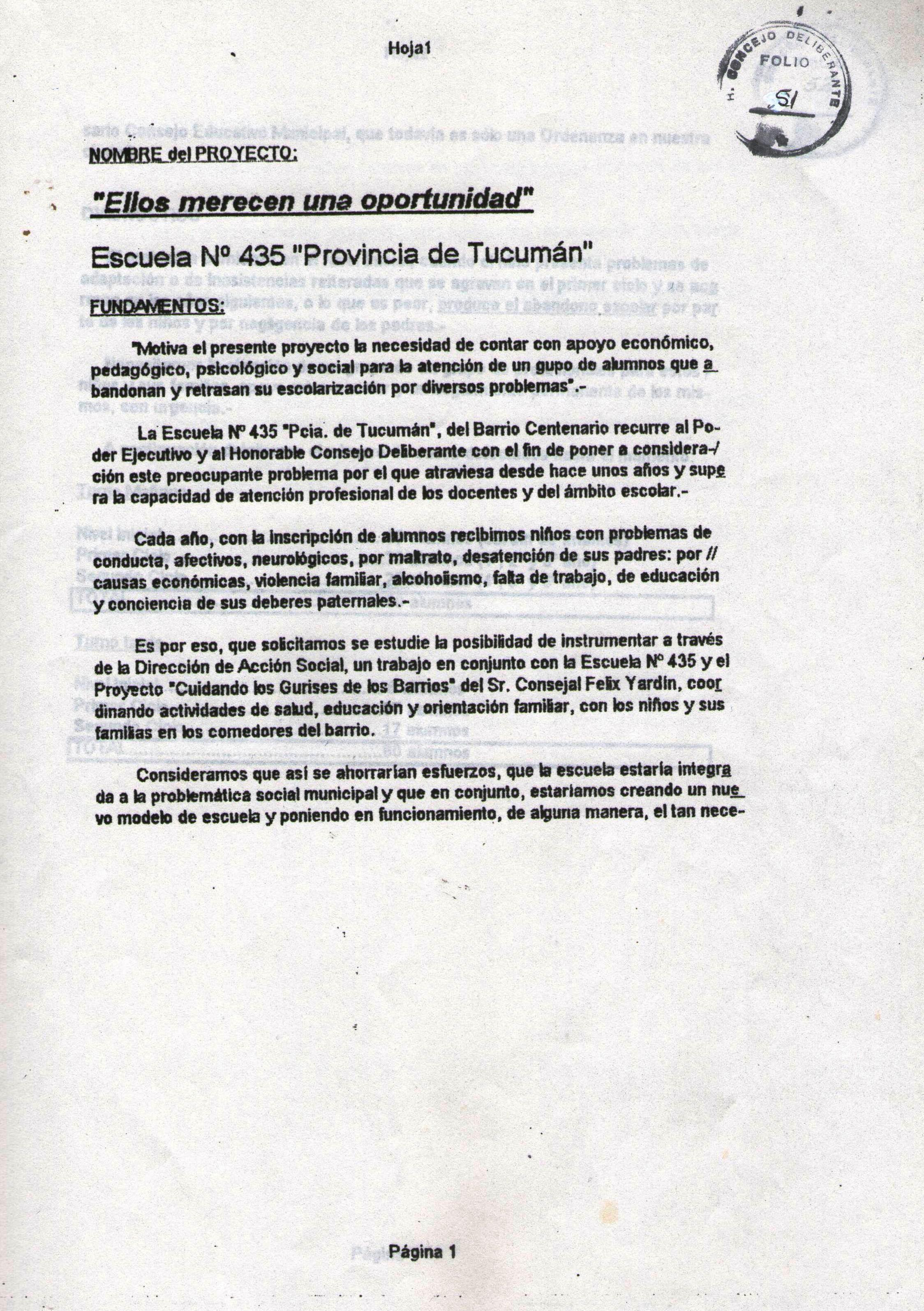 Art.1º.- APROBAR el proyecto “ELLOS MERECEN UNA OPORTUNIDAD” de la escuela 435 “PROVINCIA DE TUCUMAN” que integra la presente Ordenanza como Anexo 1.-