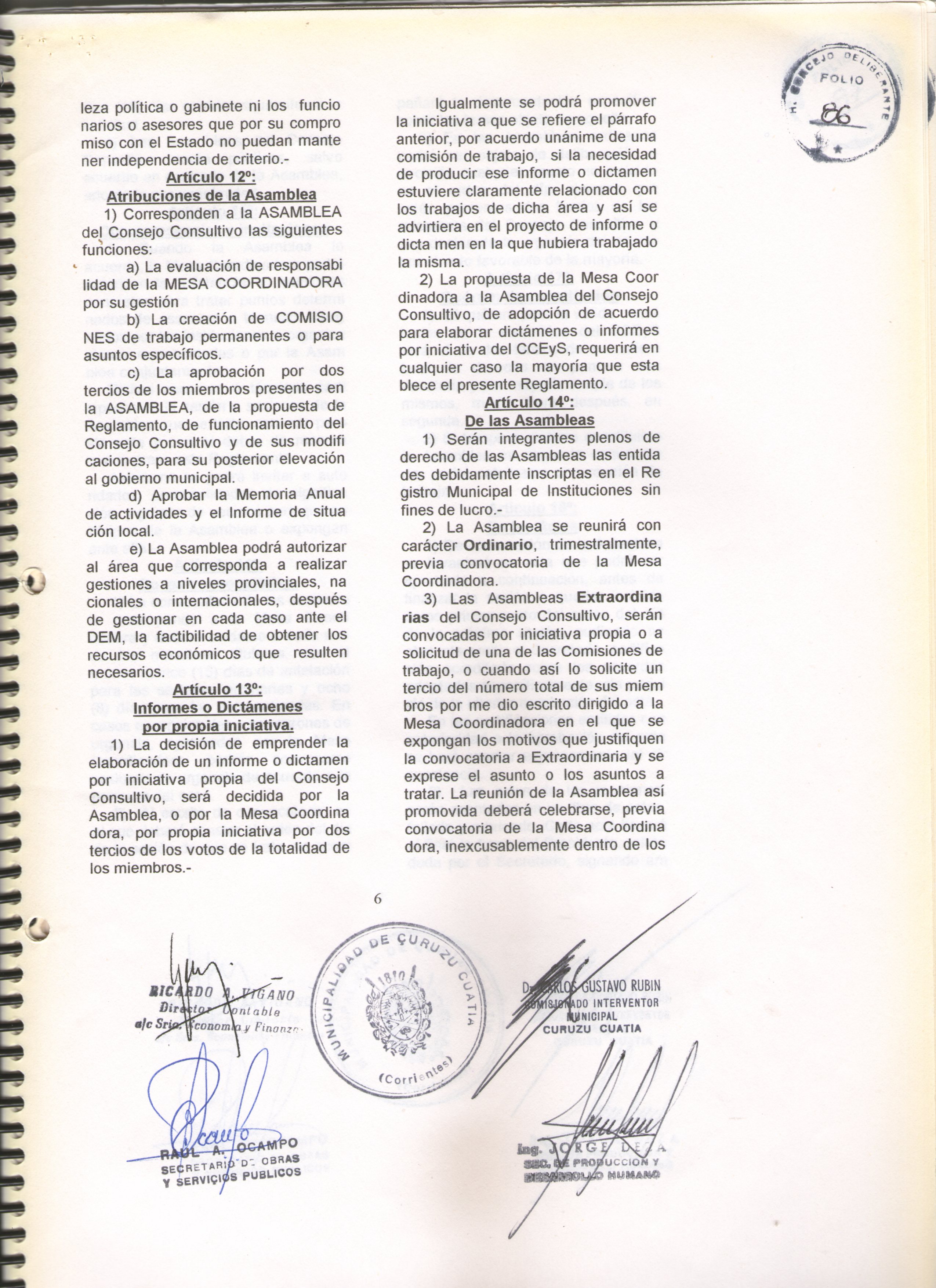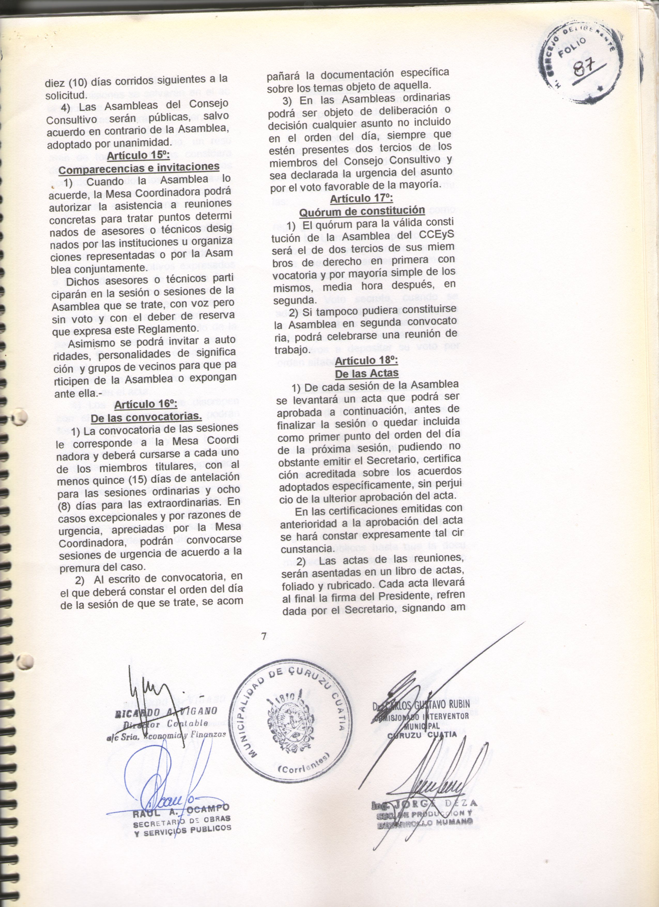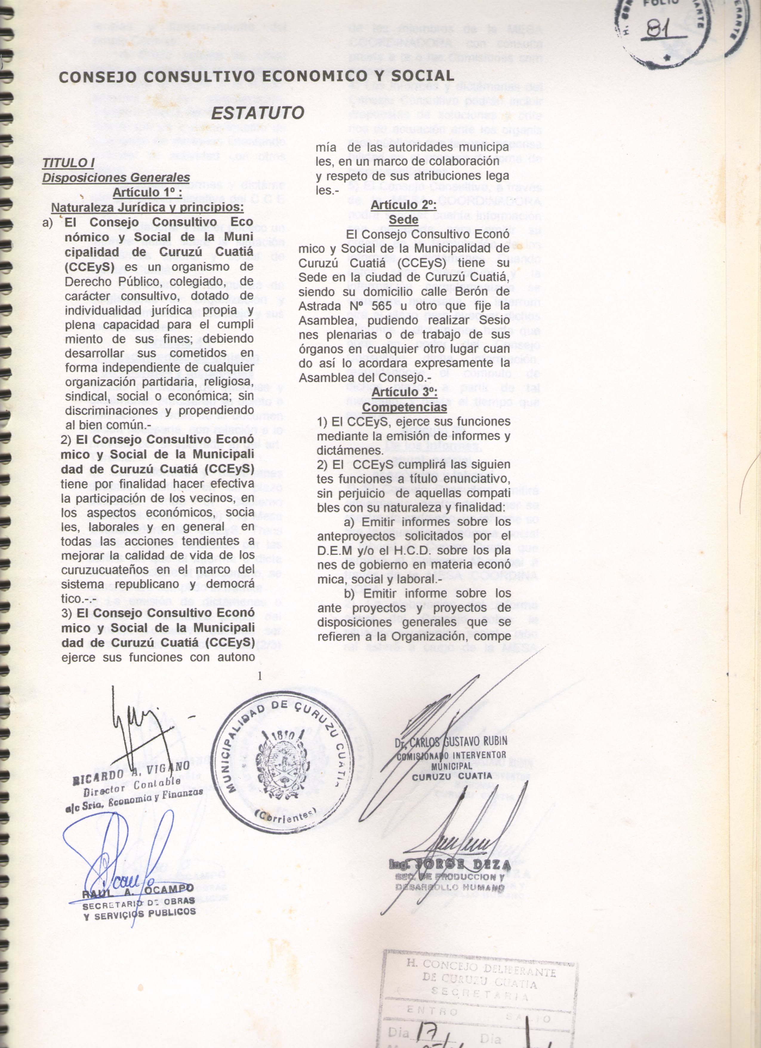 ARTICULO 1: HOMOLOGAR, de conformidad con el artículo 9 de la Ordenanza No 1777, el ESTATUTO DEL CONSEJO ECONOMICO y SOCIAL DE CURUZU CUATIA que se acompaña formando parte de la presente Ordenanza.-