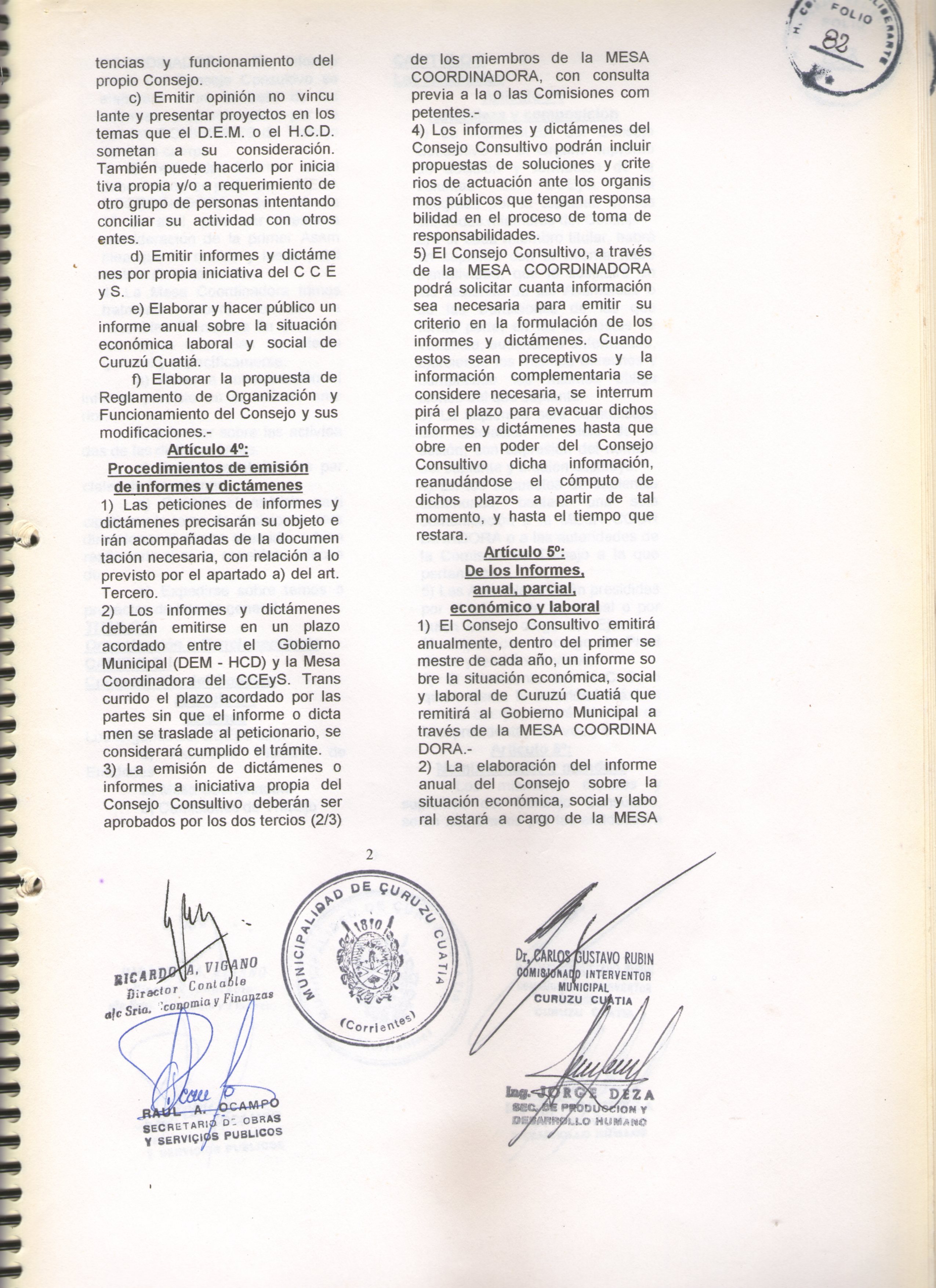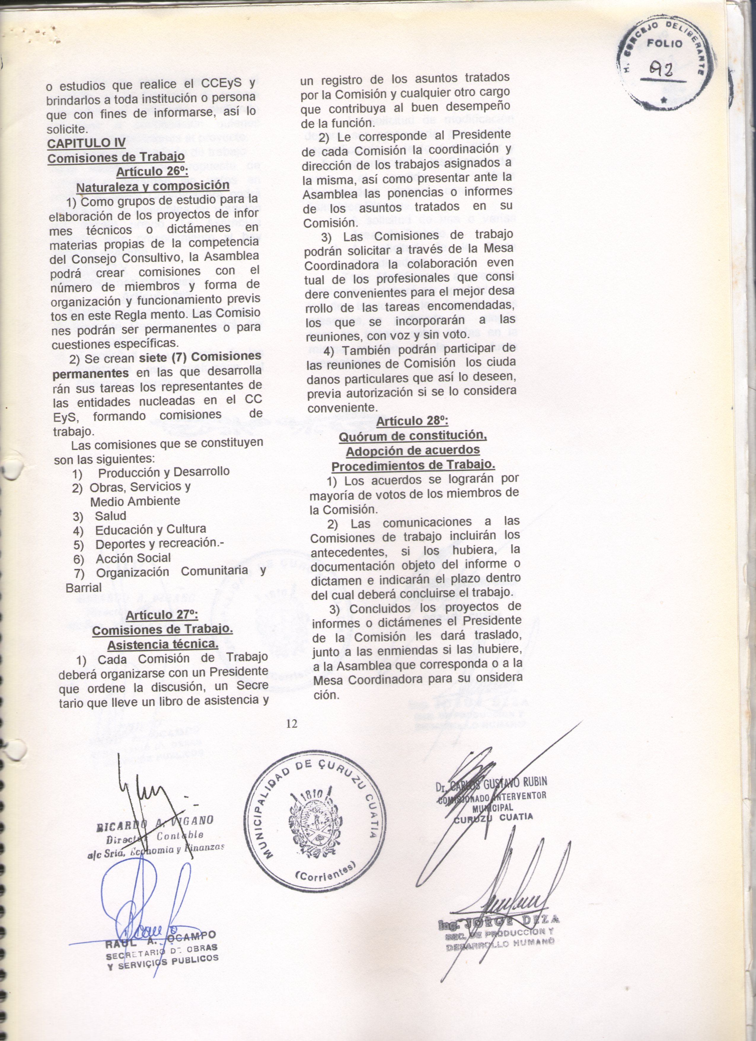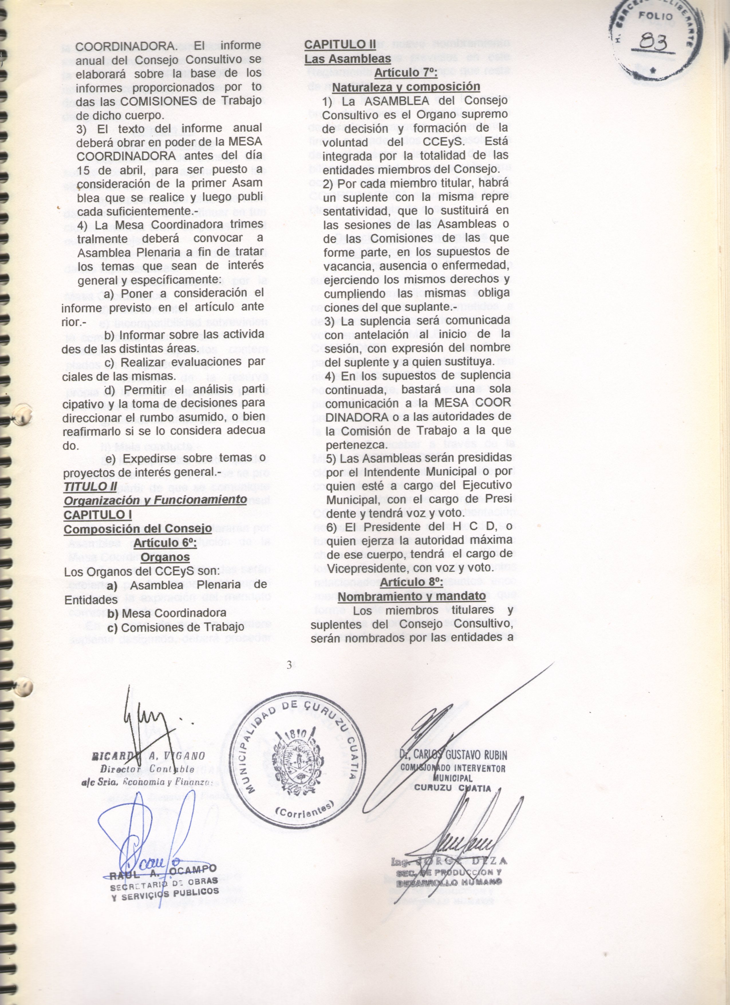 El CONSEJO ECONOMICO Y SOCIAL DE CURUZU CUATIA, creado por Ordenanza No 1777 con carácter permanente;