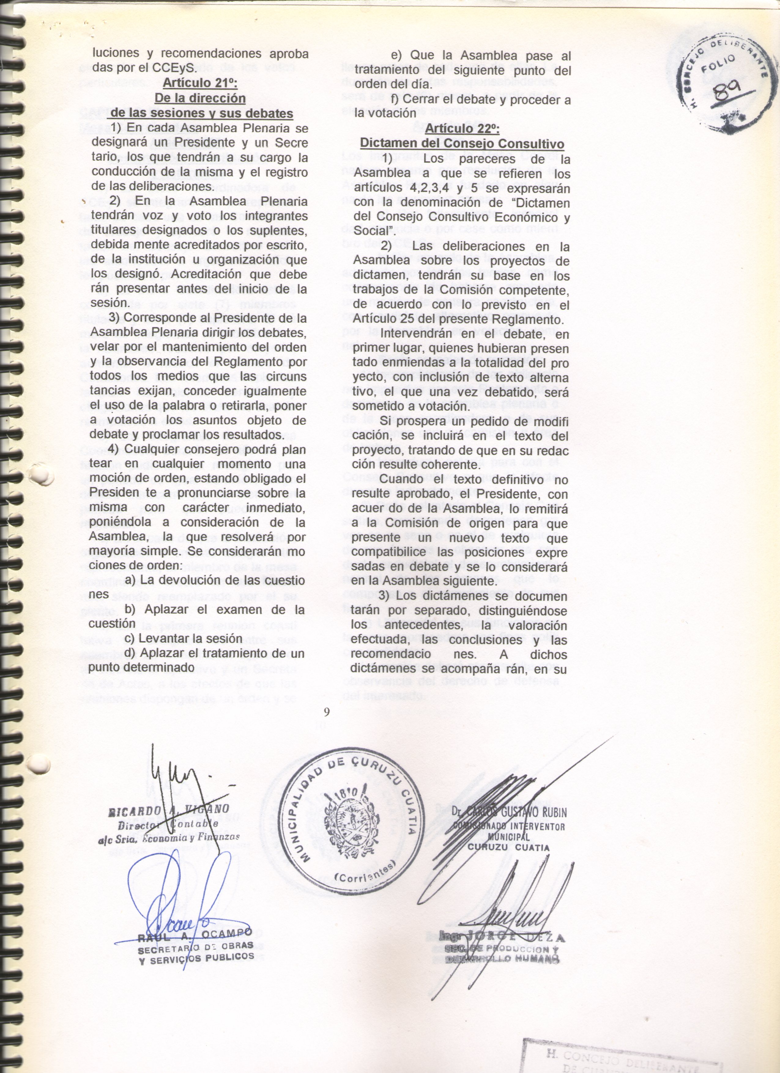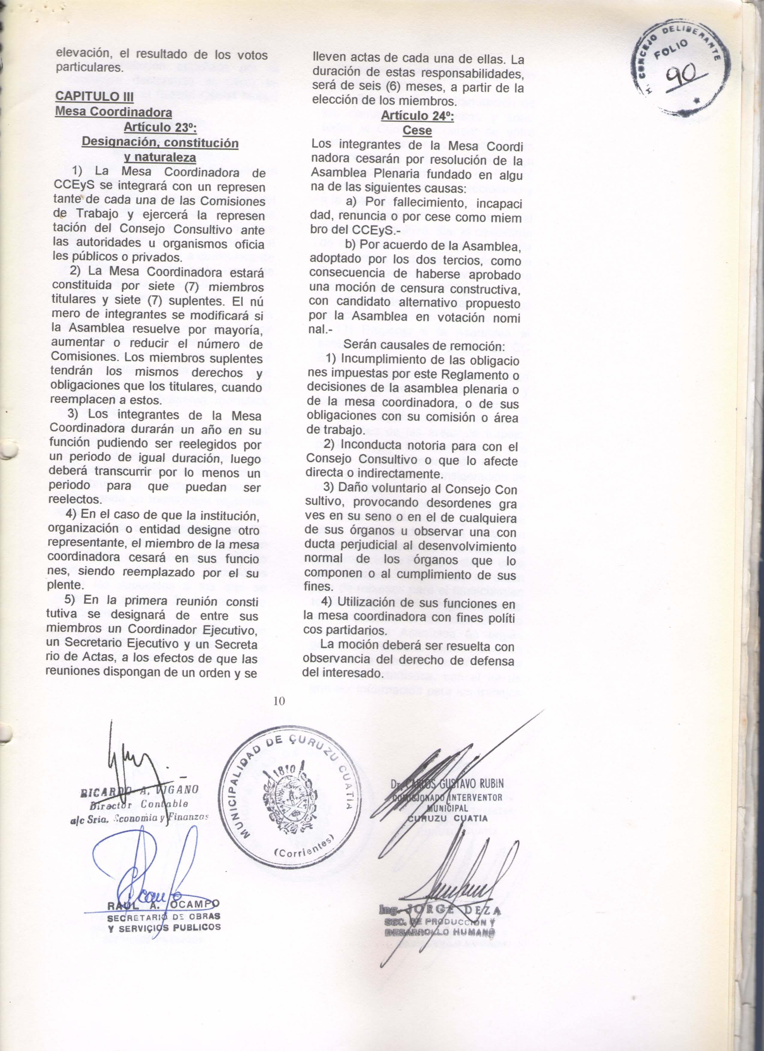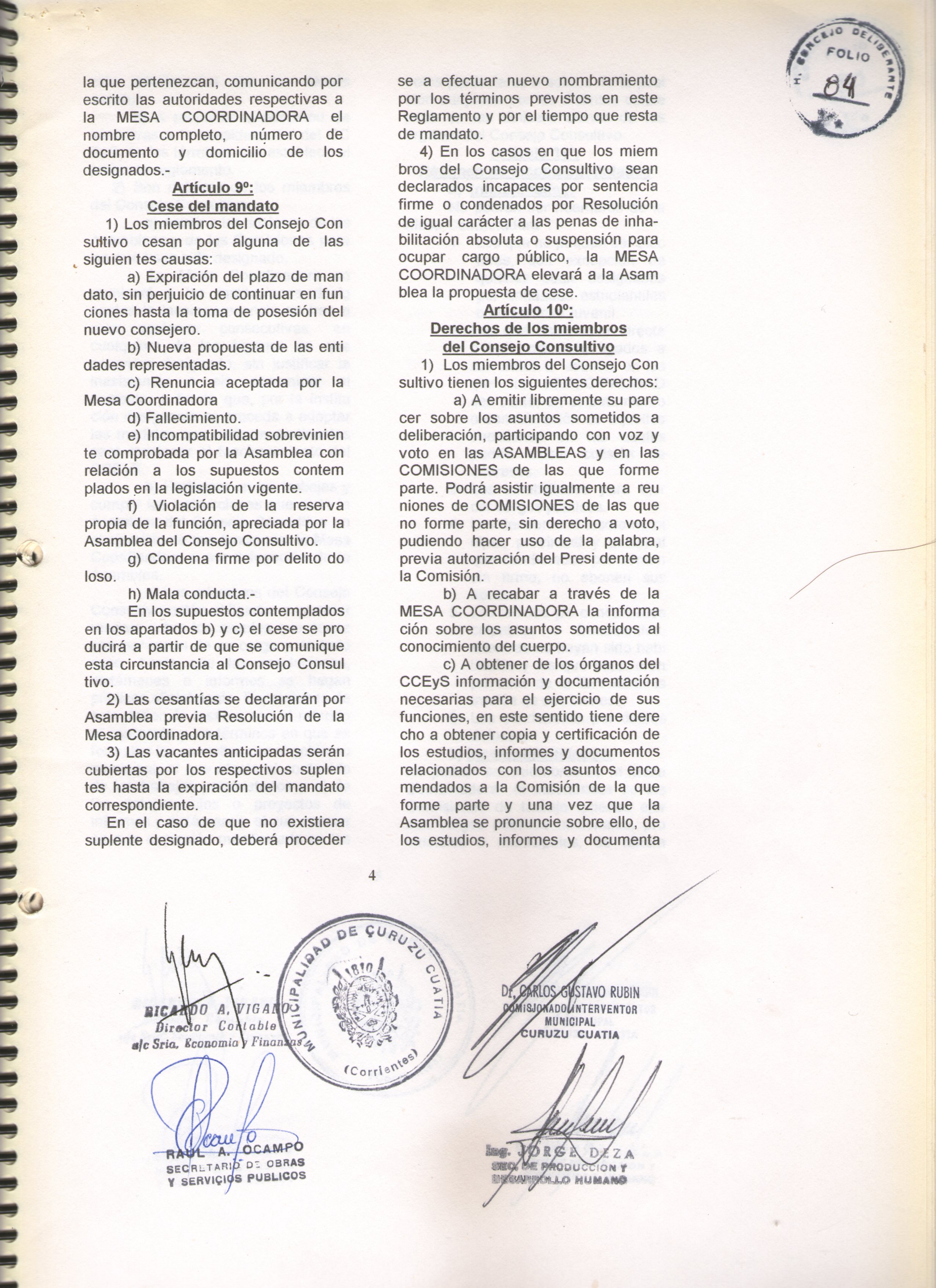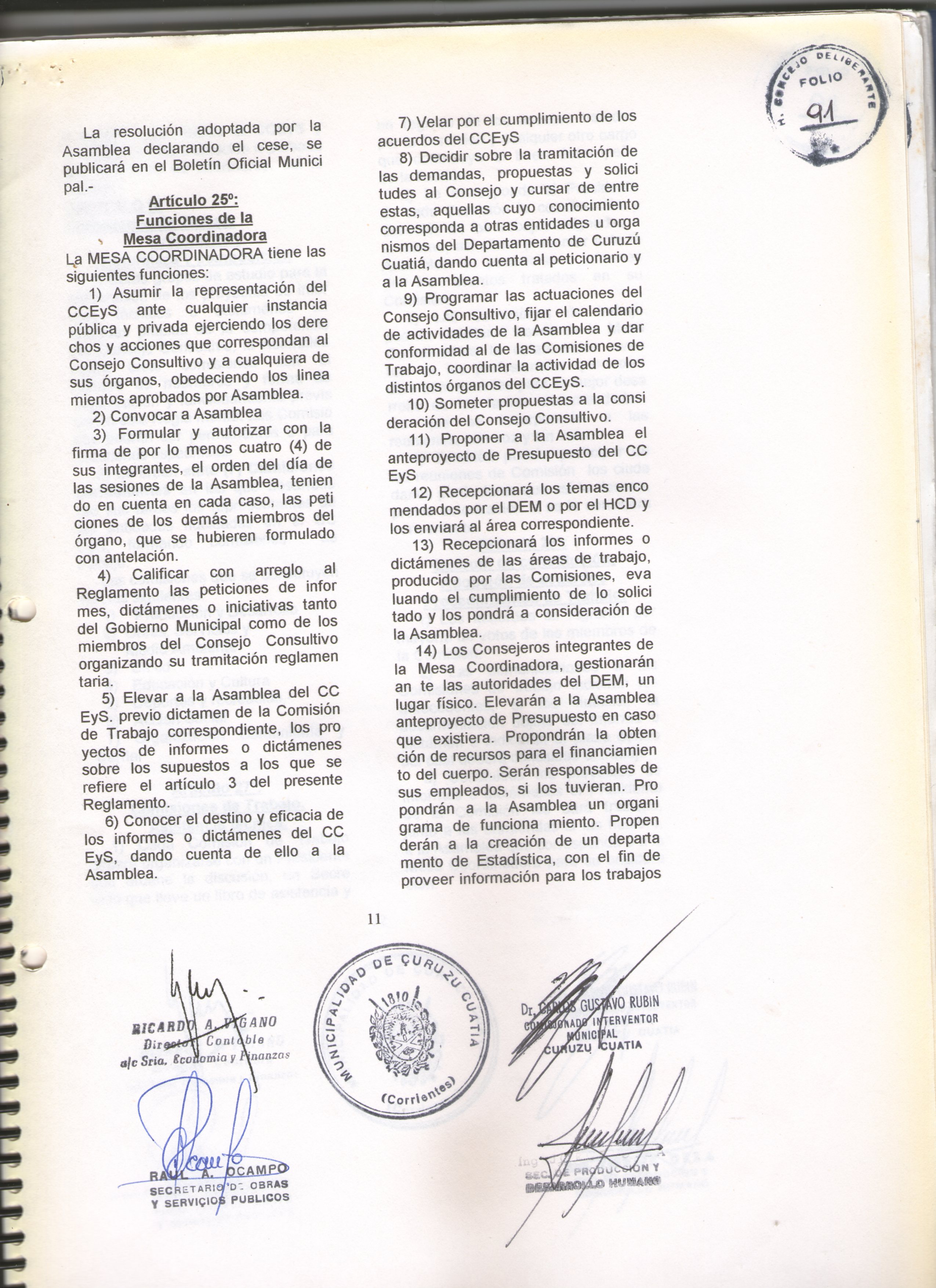 El CONSEJO ECONOMICO Y SOCIAL DE CURUZU CUATIA, creado por Ordenanza No 1777 con carácter permanente;