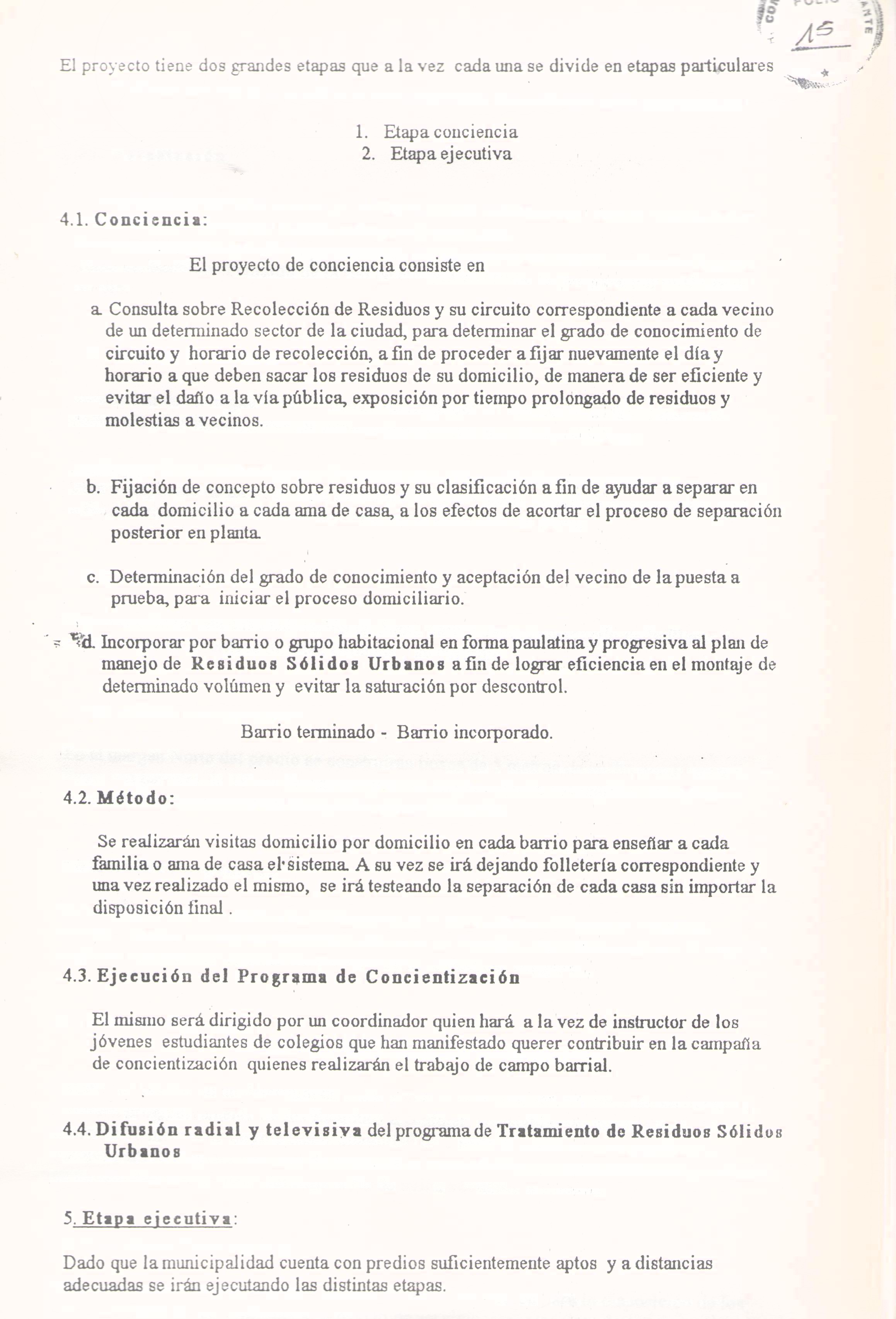 Art. 1 ".-AUTORIZASE al DEM. a realizar un sistema de disposición final y reciclado de residuos conforme los procedimientos modernos, que preservan el medio ambiente y valorizan los desechos mediante su separación y clasificación, con los lineamientos explicitados en el Anexo A que forma parte integrante de la presente Ordenanza."