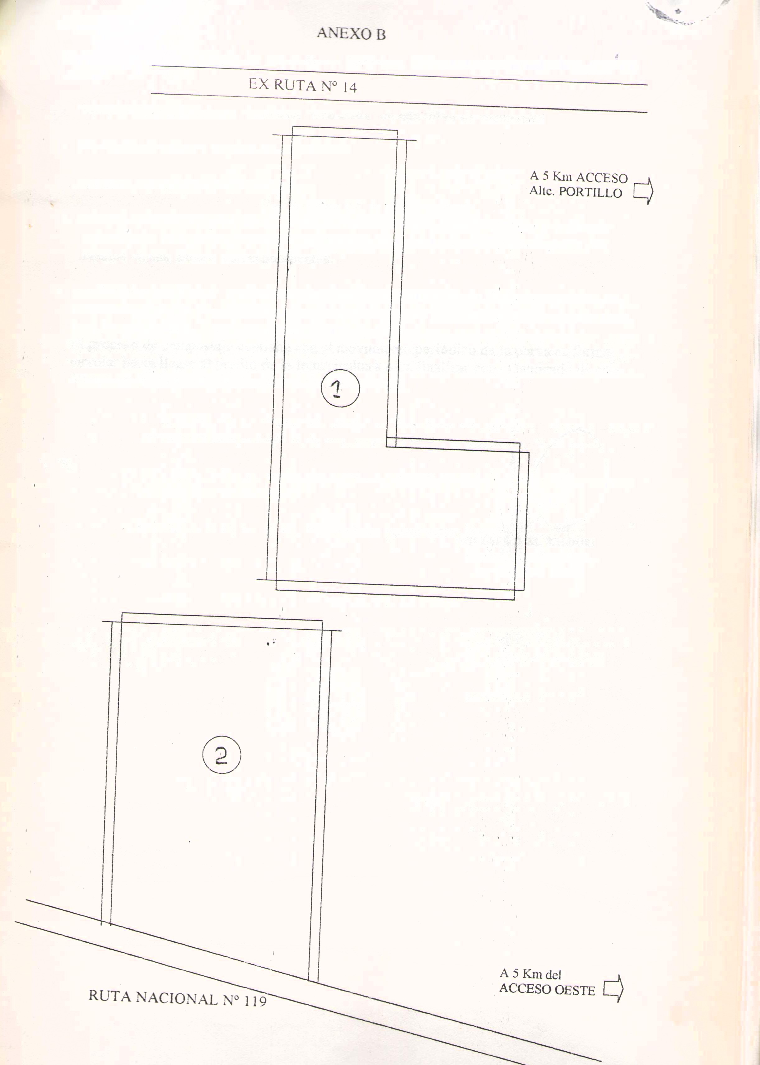 Facultar al D.E. a efectuar las gestiones necesarias para la adquisición del terreno identificado con el N° 2 del Anexo B, que forma parte integrante de la presente ficha Adrema E. 1-2-2- de 4,06 (cuatro con cero seis) hectáreas de superficie, con los siguientes linderos: Norte Nicolás Rapetti Erro. Este: parte lote N° 1 del Anexo B y parte Higinio Cayetá. Sur: Prudencio Ledesma y Oeste: Ruta Nacional N° 119, afectándolo al mismo fin.