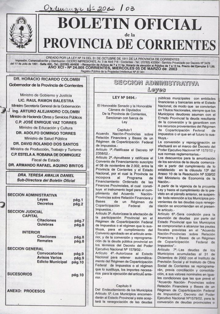 ORDENANZA N° 2.062