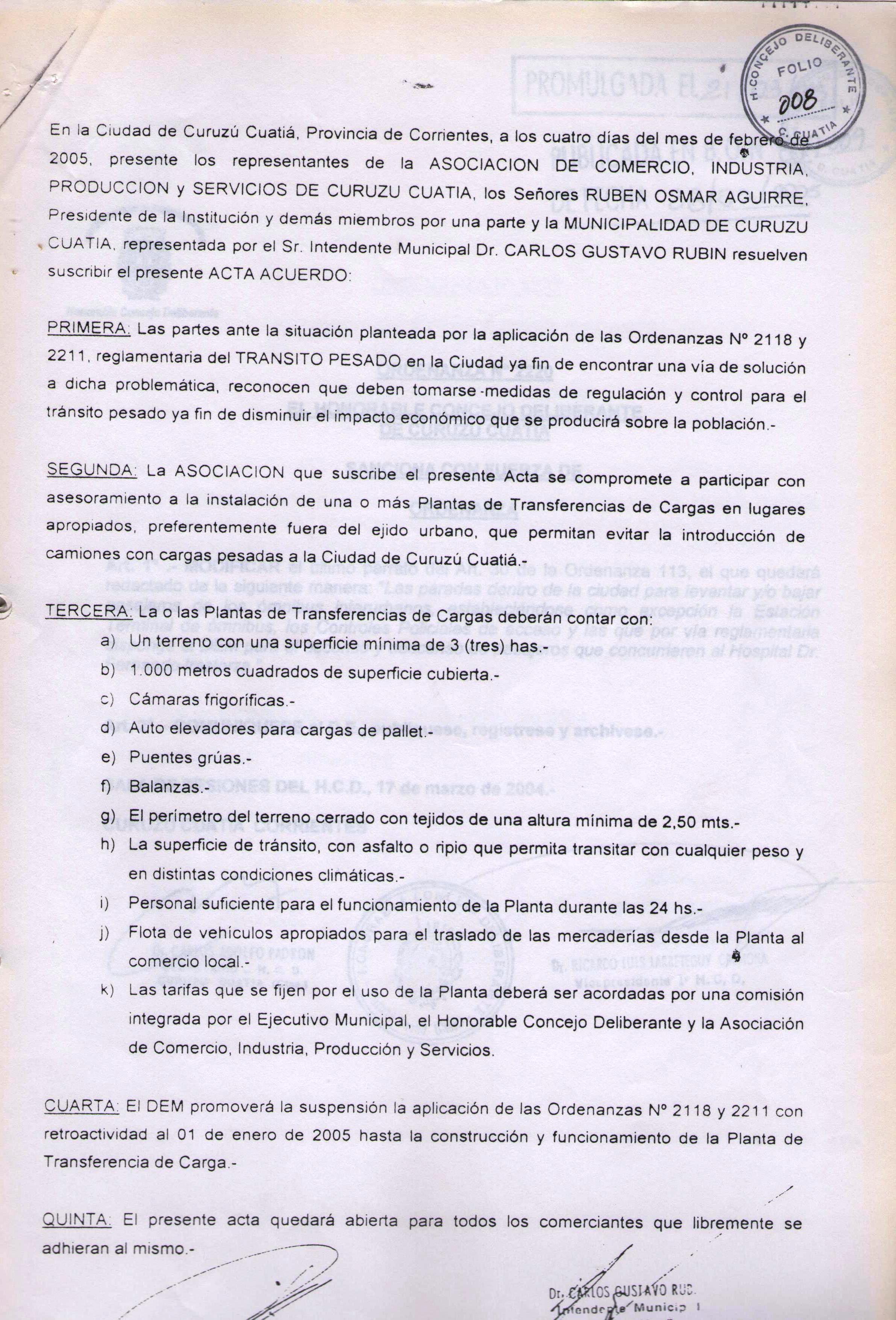Art. 1.- SUSPENDASE la vigencia de las Ordenanzas N° 2118 y 2211 con efecto retroactivo al 1 de Enero de 2005 por el término de seis meses, prorrogables por el D.E.M, por otro período igual por razones debidamente justificadas.