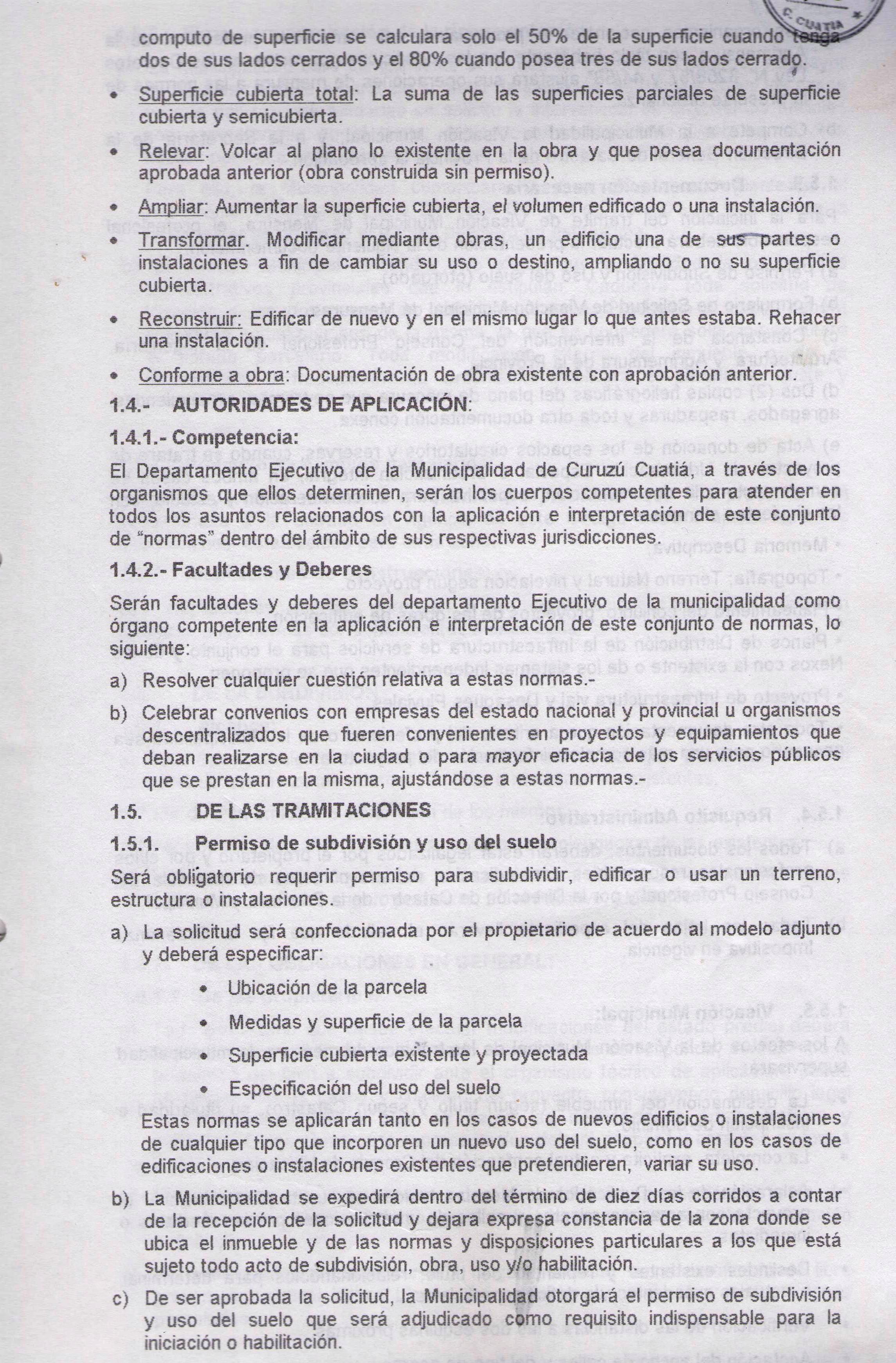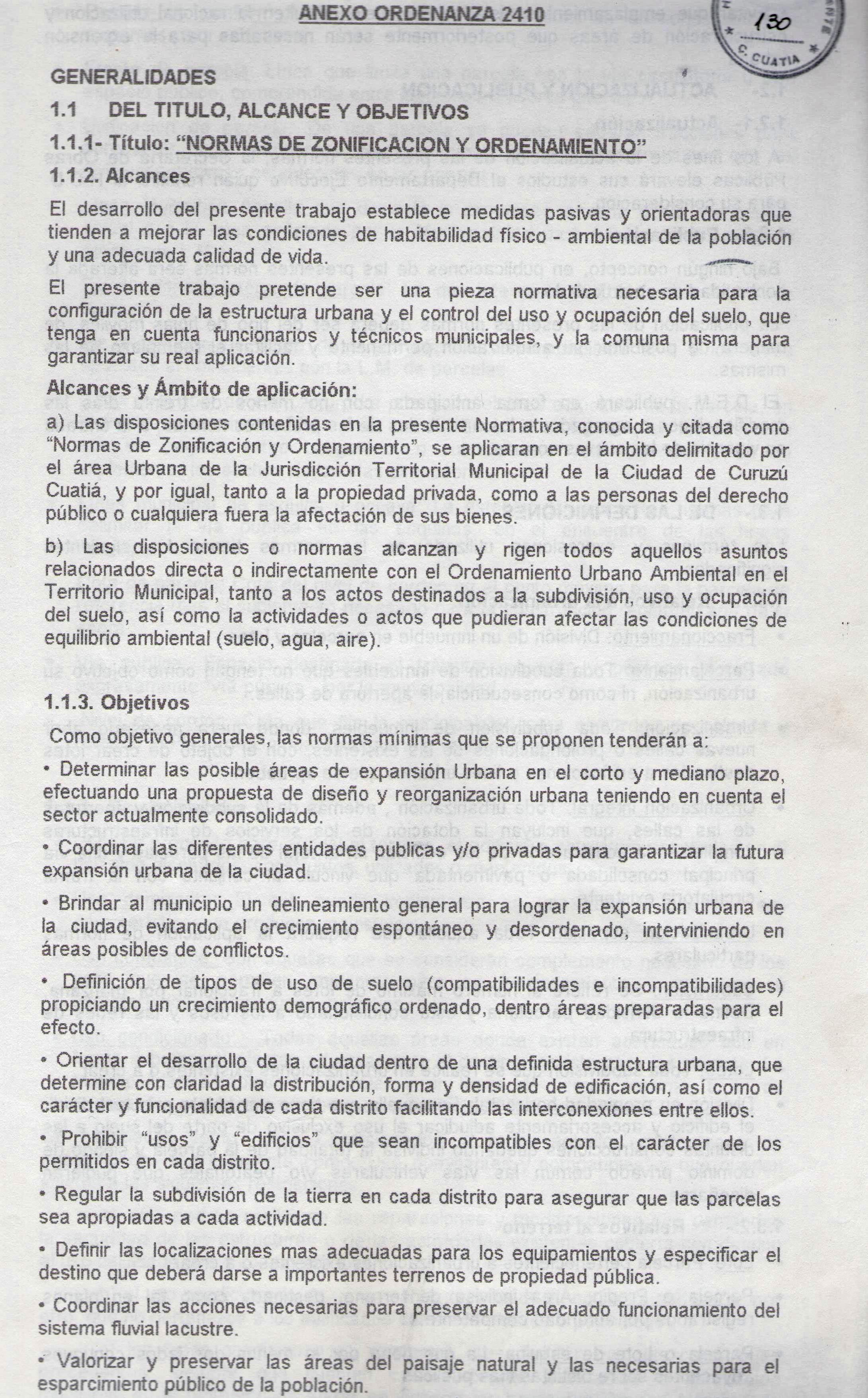 a) Las disposiciones contenidas en la presente Normativa, conocida y citada como -Normas de Zonificación y Ordenamiento-, se aplicaran en el ámbito delimitado por el área Urbana de la Jurisdicción Territorial Municipal de la Ciudad de Curuzú Cuatiá, y por igual, tanto a la propiedad privada, como a las personas del derecho público o cualquiera fuera la afectación de sus bienes.