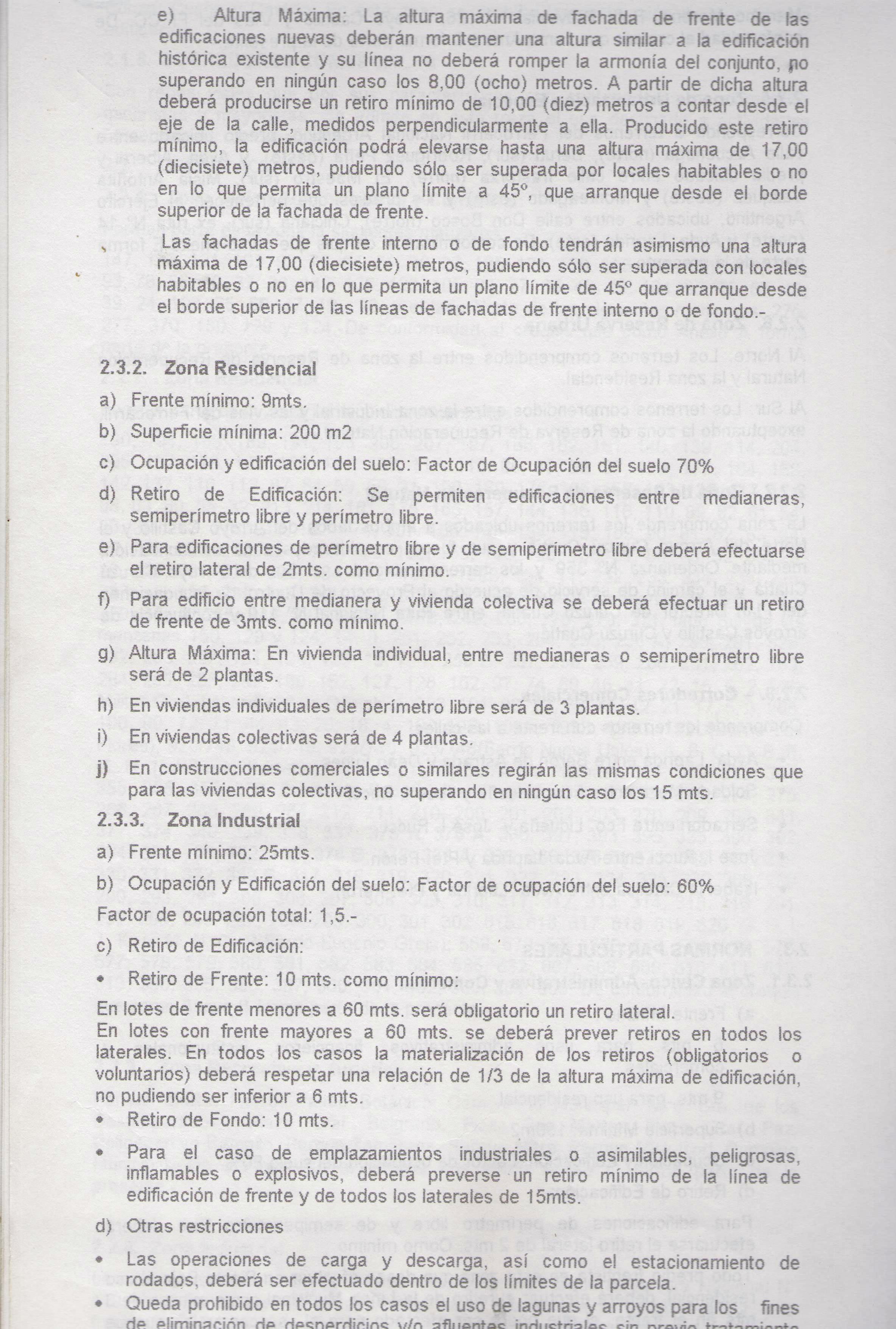 · Para la realización en esta zona, de obras que por sus características se encuentren encuadradas dentro de las definidas en la Zona Residencial deberán respetarse las normas particulares del punto 2.3.2.
