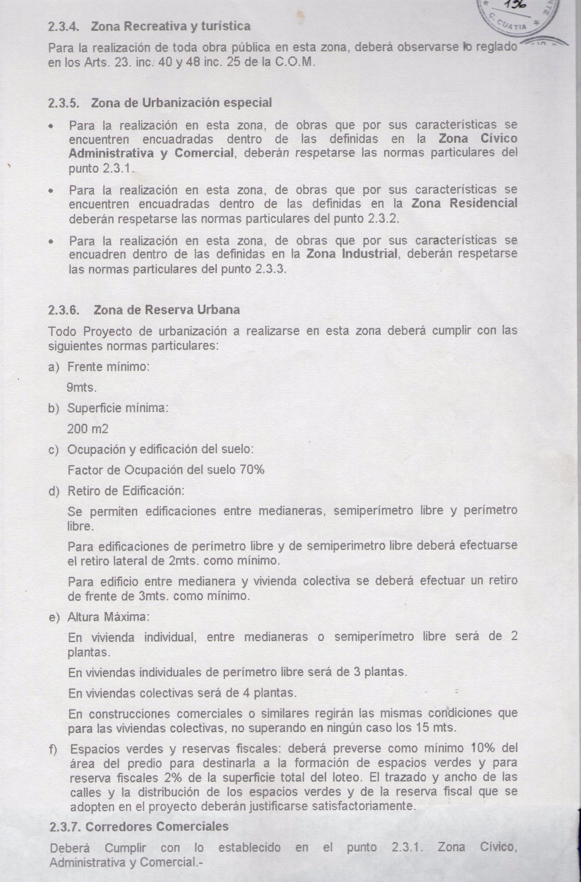 · Para la realización en esta zona, de obras que por sus características se encuentren encuadradas dentro de las definidas en la Zona Cívico Administrativa y Comercial, deberán respetarse las normas particulares del punto 2.3.1.