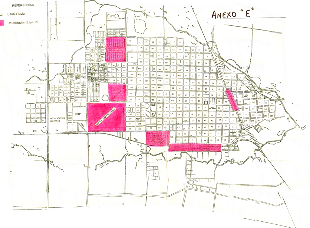 147, 132, 121, 107, 92, 79, 64, 51, 36, 27, 185, 171, 170, 153, 143, 131, 122, 106, 93, 78, 65, 50, 37, 26, 149, 130, 123, 105, 94, 77, 66, 49, 25, 104, 95, 76, 67, 48, 39, 24, 103, 75, 68, 47, 40 , 23, y el lado Norte de las siguientes manzanas: 276, 277, 370, 150, 129 y 124.-De conformidad al croquis que como Anexo A forma parte de la presente.
