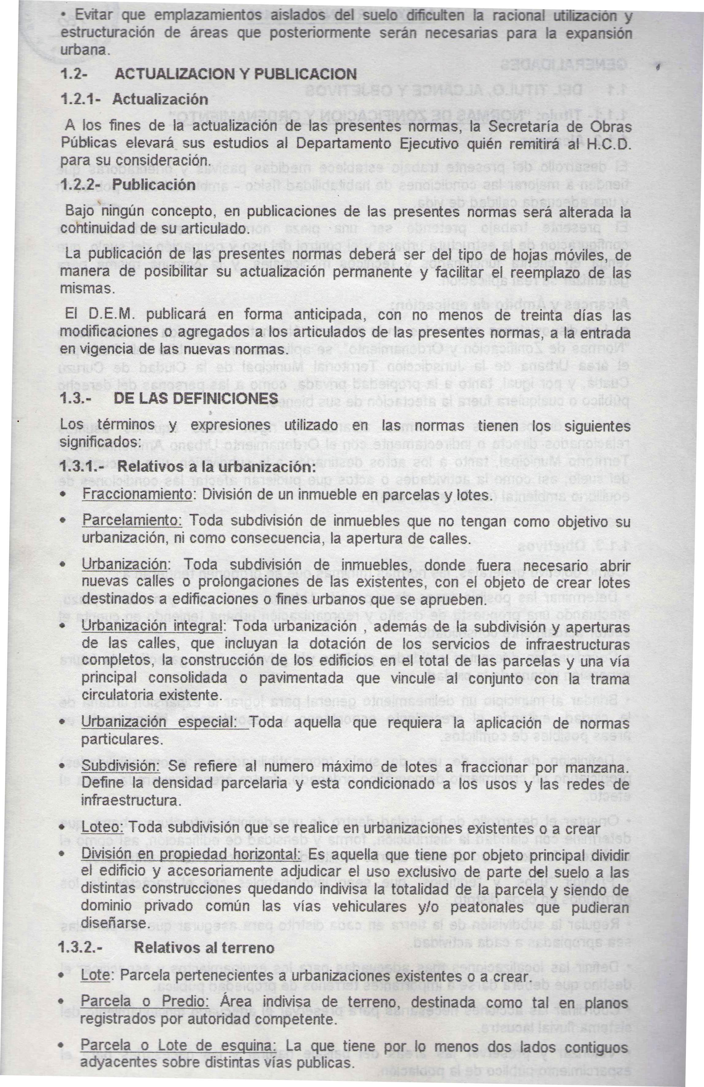A los fines de la actualización de las presentes normas, la Secretaría de Obras Públicas elevará sus estudios al Departamento Ejecutivo quién remitirá al H.C.D. para su consideración.