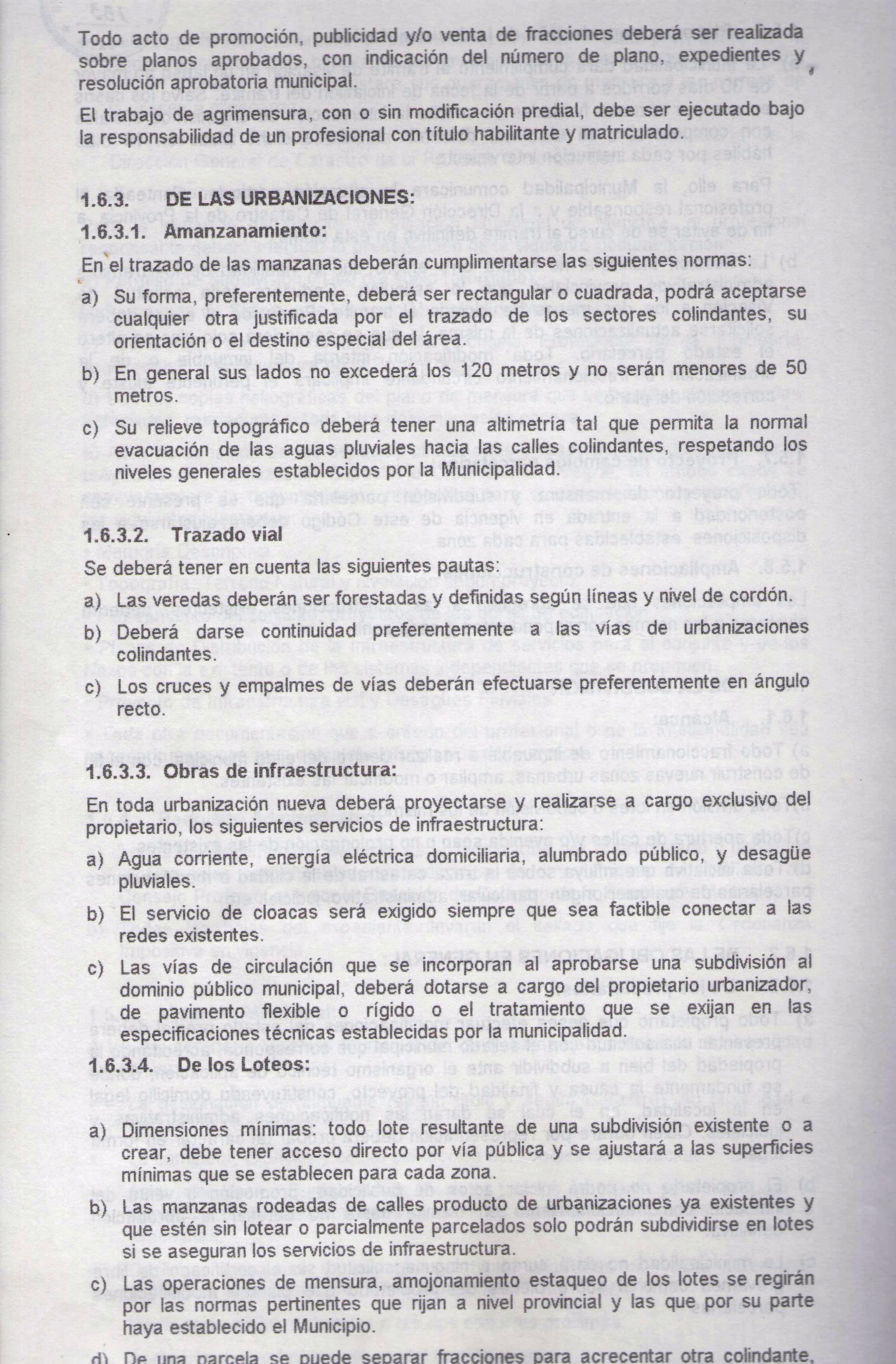 b) Las disposiciones o normas alcanzan y rigen todos aquellos asuntos relacionados directa o indirectamente con el Ordenamiento Urbano Ambiental en el Territorio Municipal, tanto a los actos destinados a la subdivisión, uso y ocupación del suelo, así como la actividades o actos que pudieran afectar las condiciones de equilibrio ambiental (suelo, agua, aire).