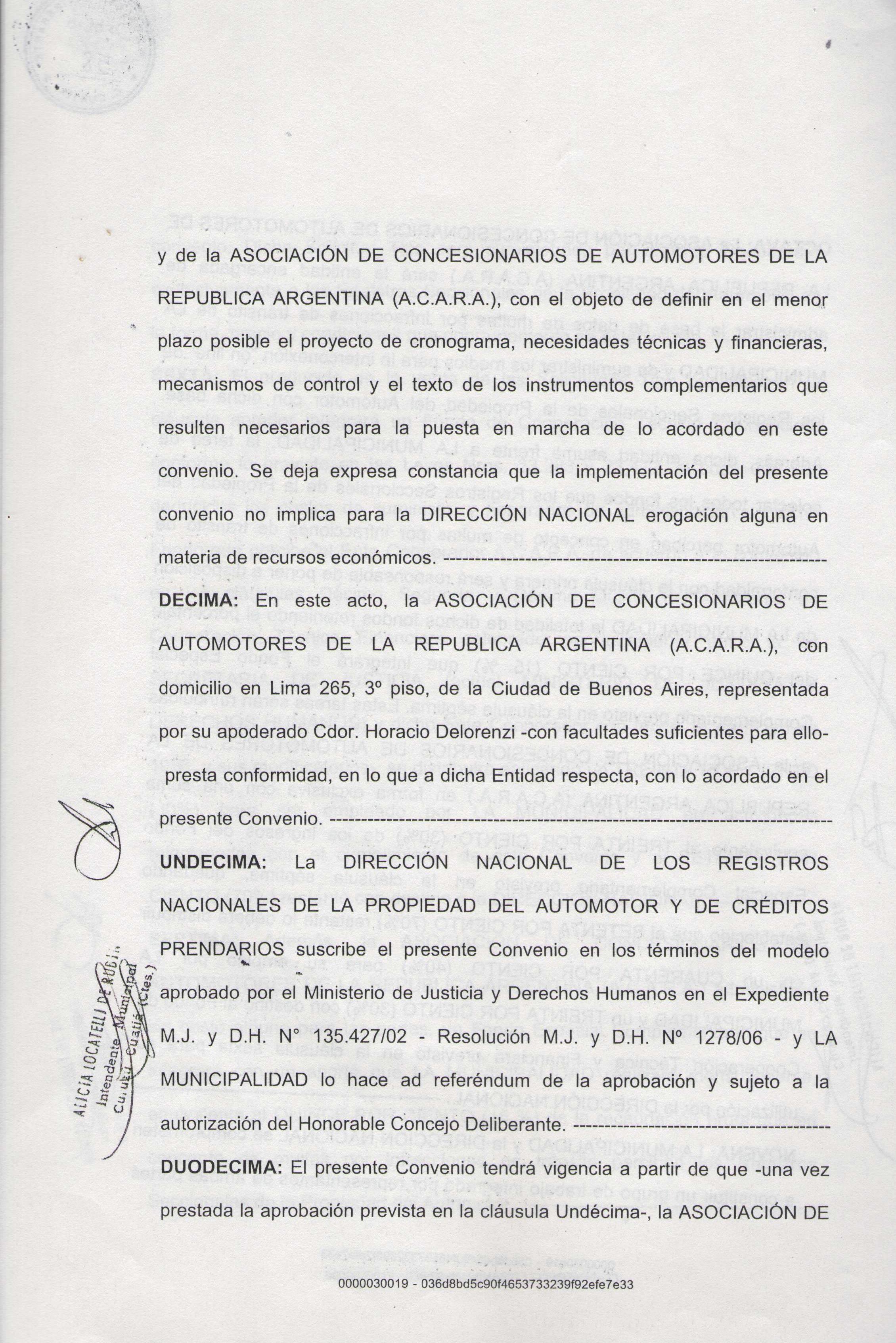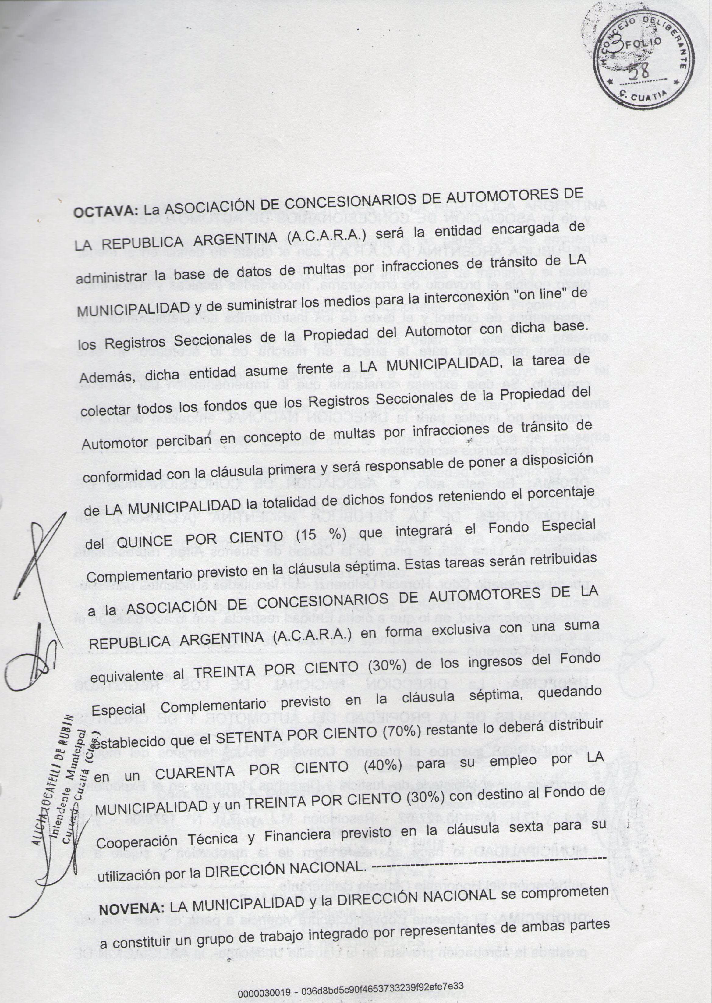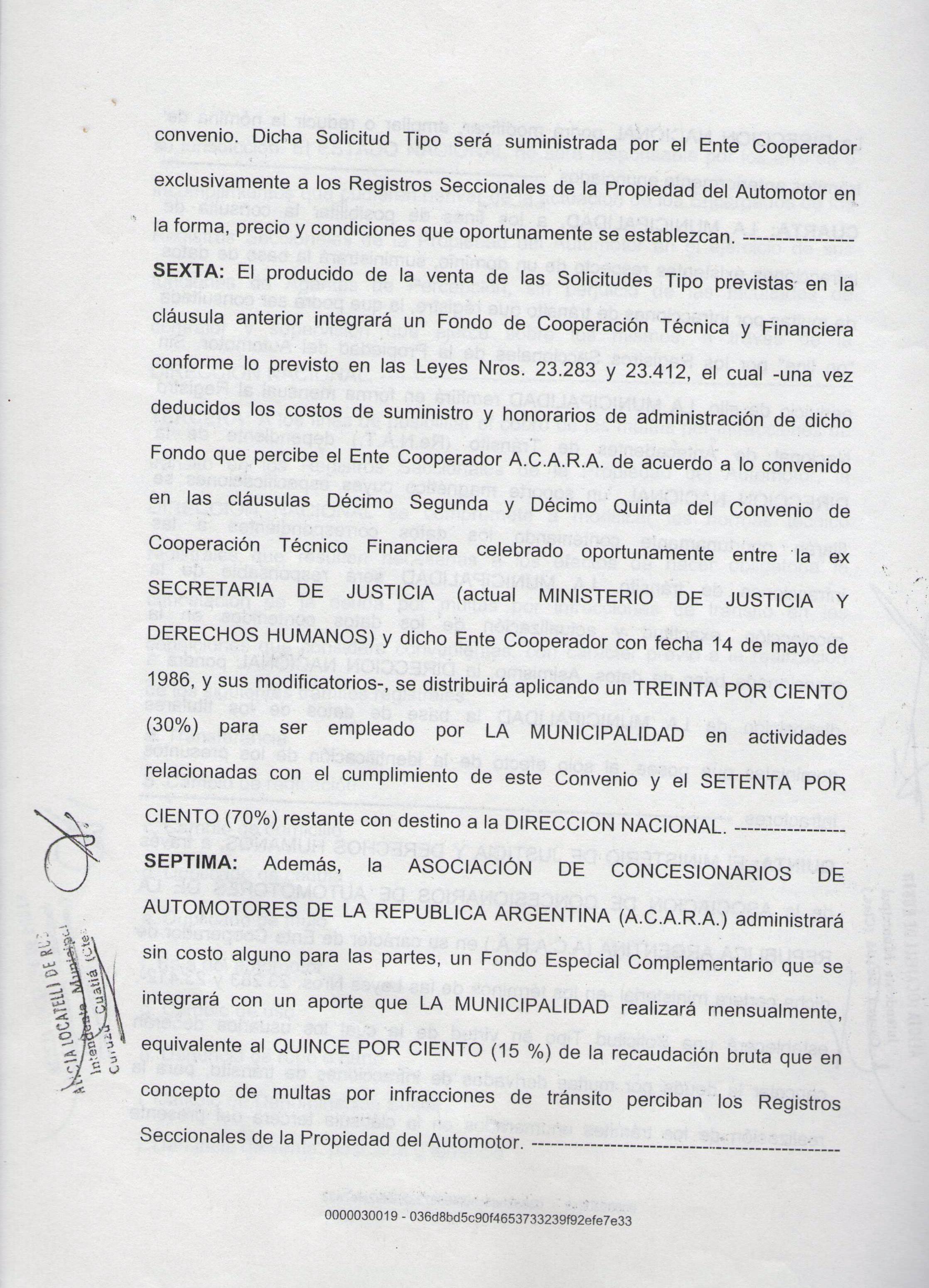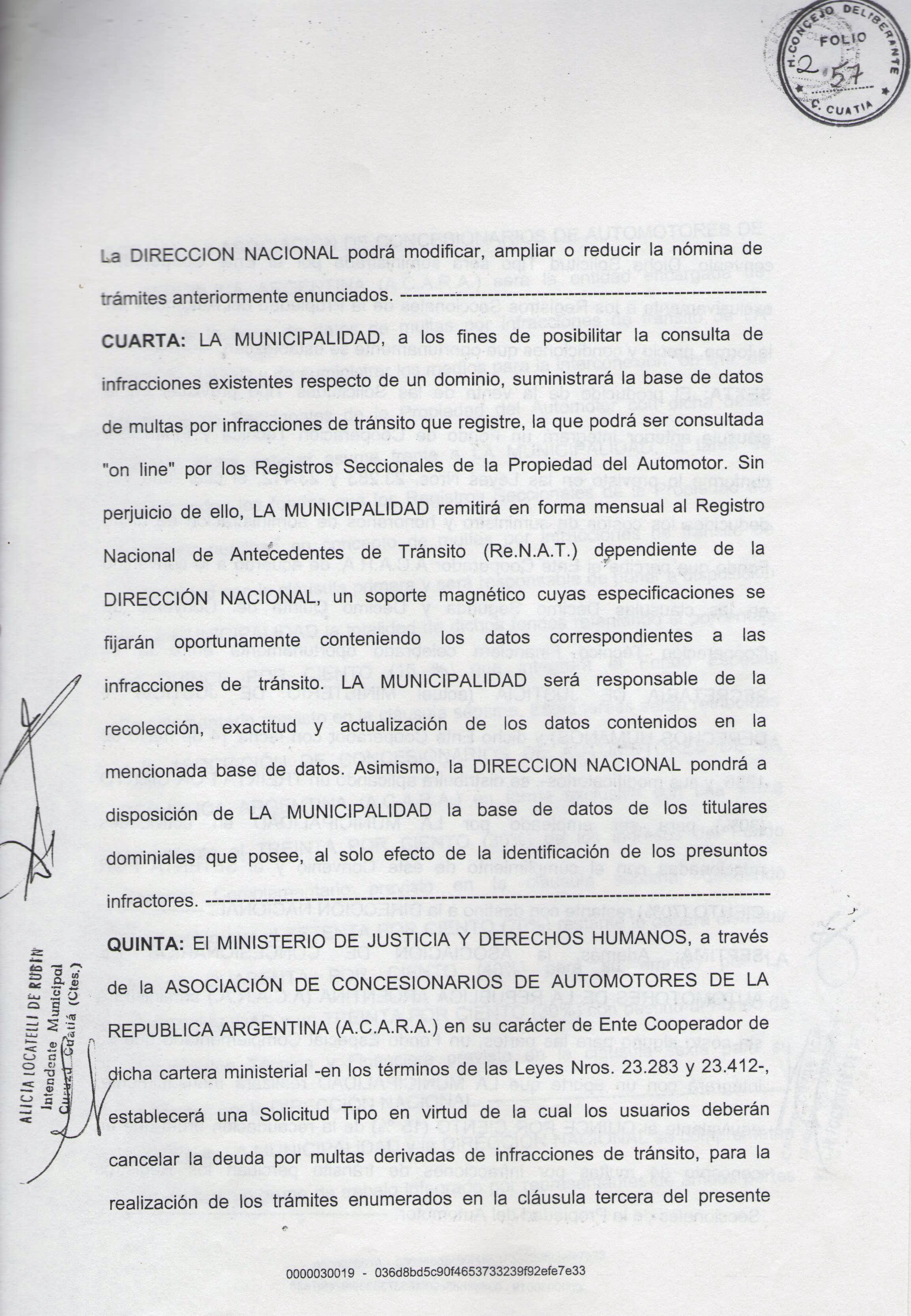 Art.1º.- Homologase el Convenio y su correspondiente Anexo celebrado el 26 de junio de 2007 entre la MUNICIPALIDAD DE CURUZU CUATIA y la DIRECCION NACIONAL de los REGISTROS NACIONALES de la PROPIEDAD AUTOMOTOR y CREDITOS PRENDARIOS, referido al Sistema Unificado de Gestión de Infracciones de Tránsito (SUGIT) y que obra adjunto a la presente.