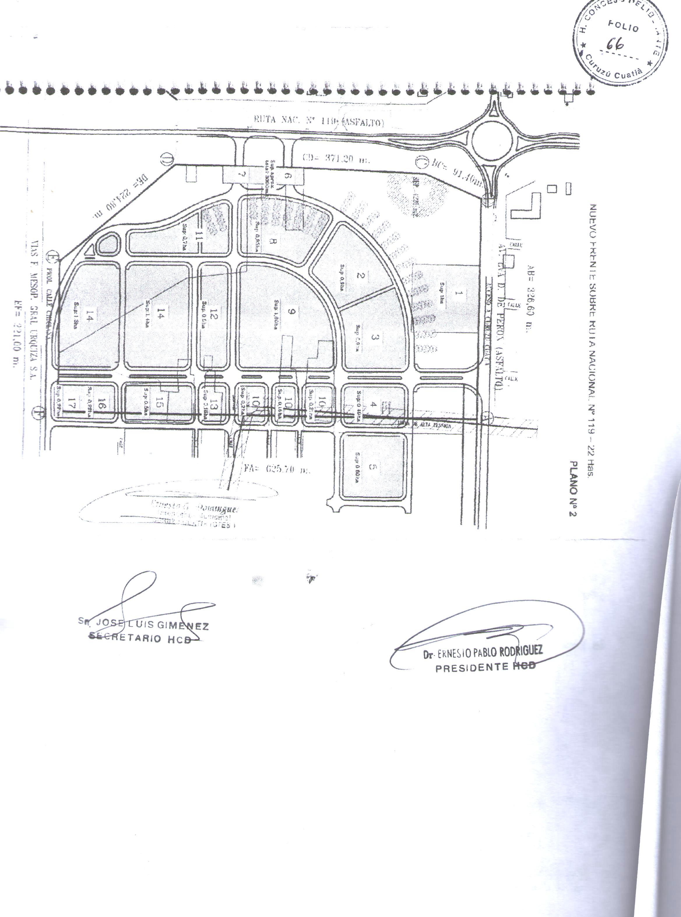 Art. 1º.- Autorizar la urbanización y zonificación del terreno de 22 Has., de propiedad municipal lindante con el Acceso Oeste y Ruta Nacional Nº 119. Dicho espacio físico estará destinado al desarrollo urbano, incluyendo un Centro de Transferencia de Cargas, una nueva Terminal de Ómnibus, un sector parquizado aledaño a el Parque del Bicentenario, y sectores residenciales, comerciales y recreativos, además de vías de circulación de acceso, circulación interna y de comunicación con ruta Nacional Nº 119, incluyendo tránsito pesado. Según croquis adjunto el que será tomado como referencia para eventuales modificaciones.
