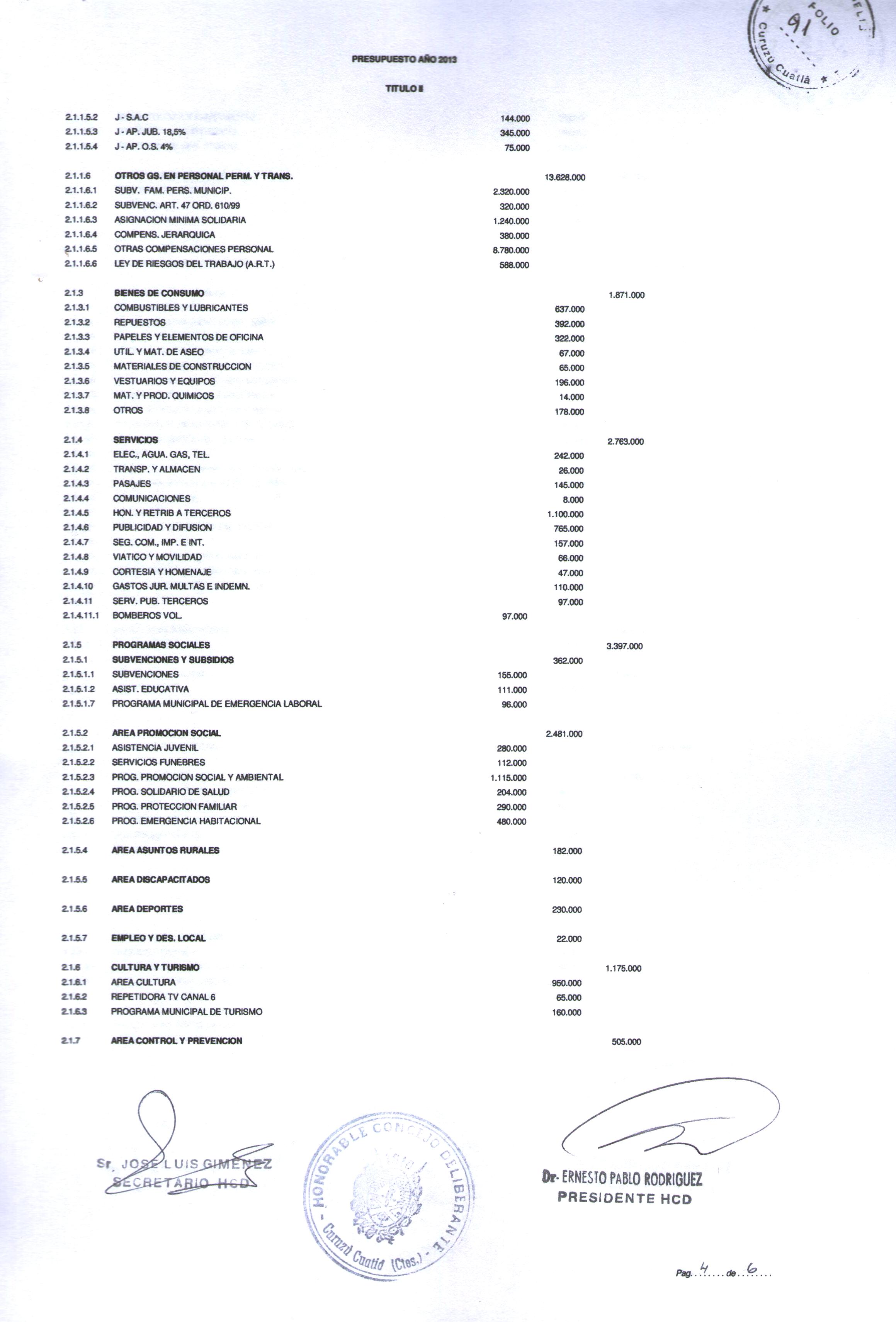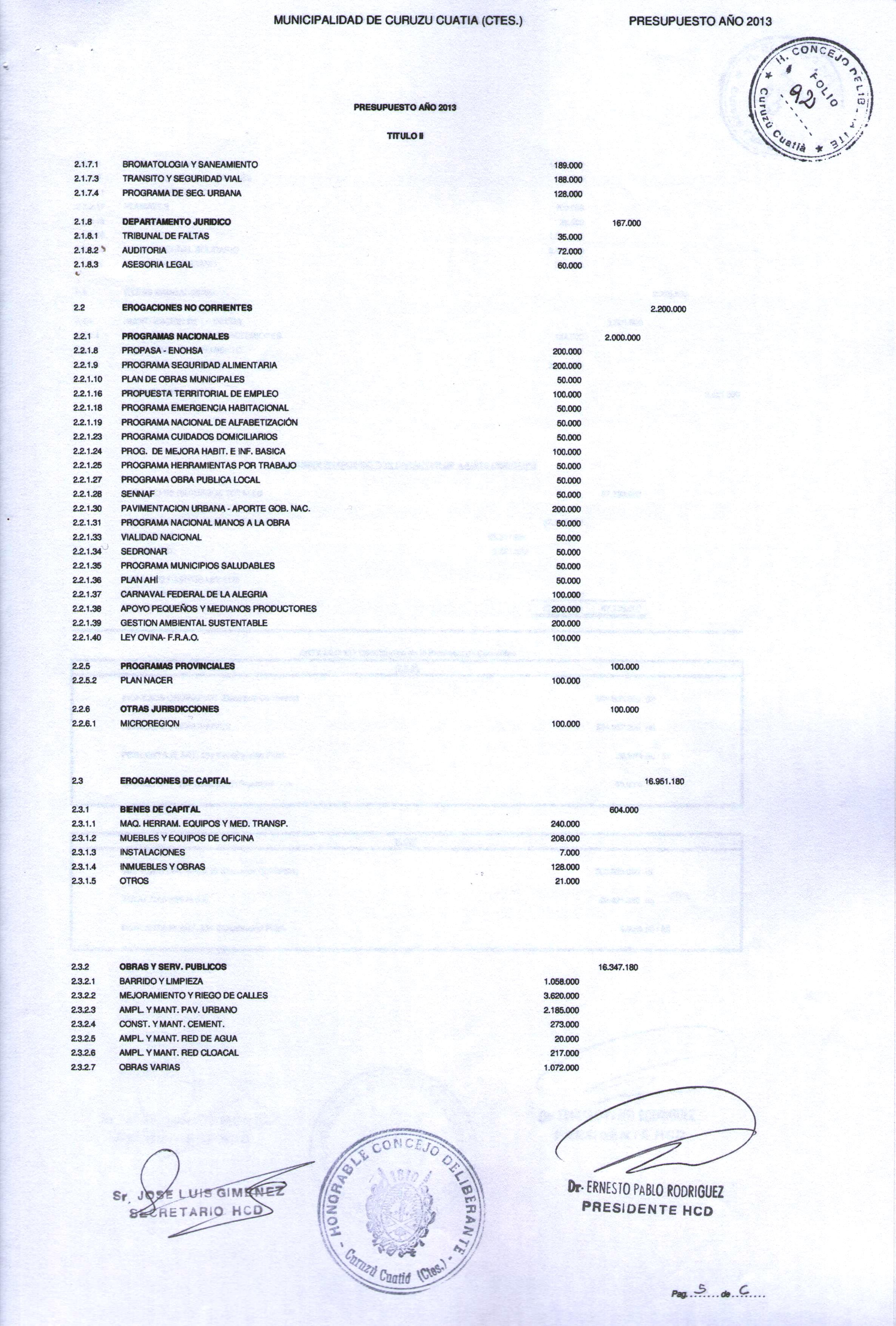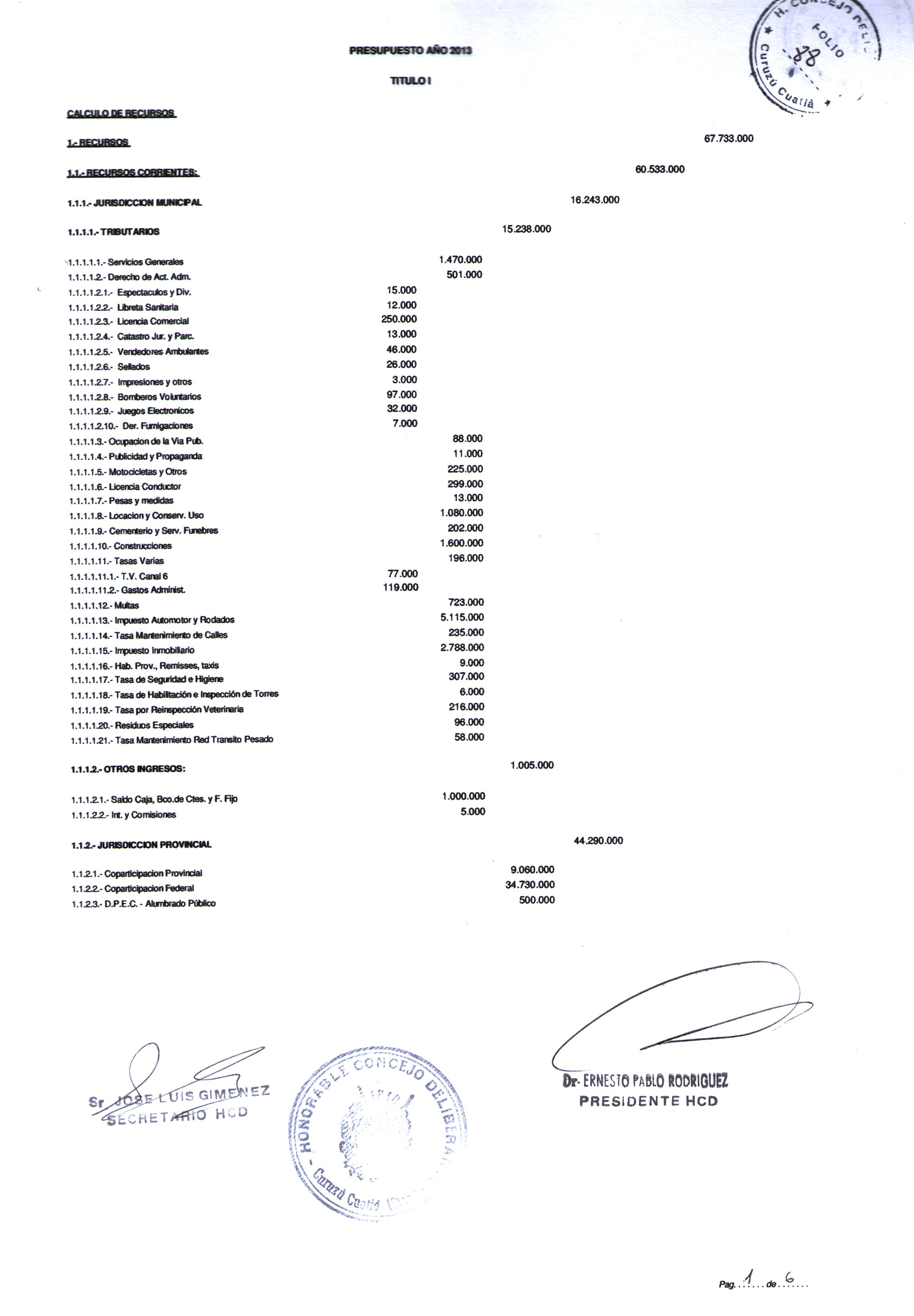 Art.1º.- APROBAR el PRESUPUESTO GENERAL DE LA MUNICIPALIDADDE CURUZU CUATIA para el ejercicio 2013, que obra como Anexo de la presente.