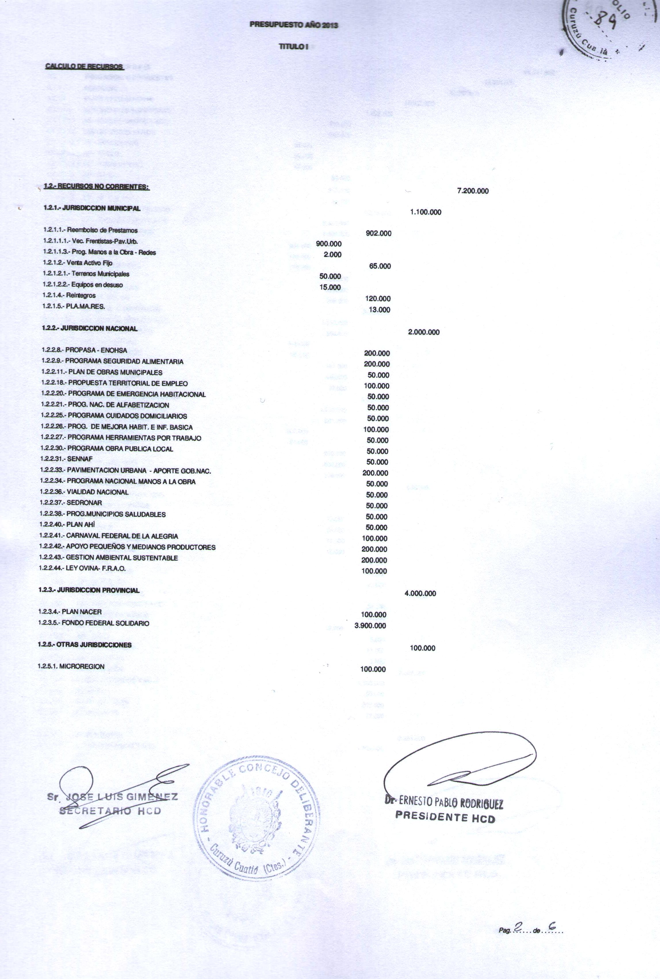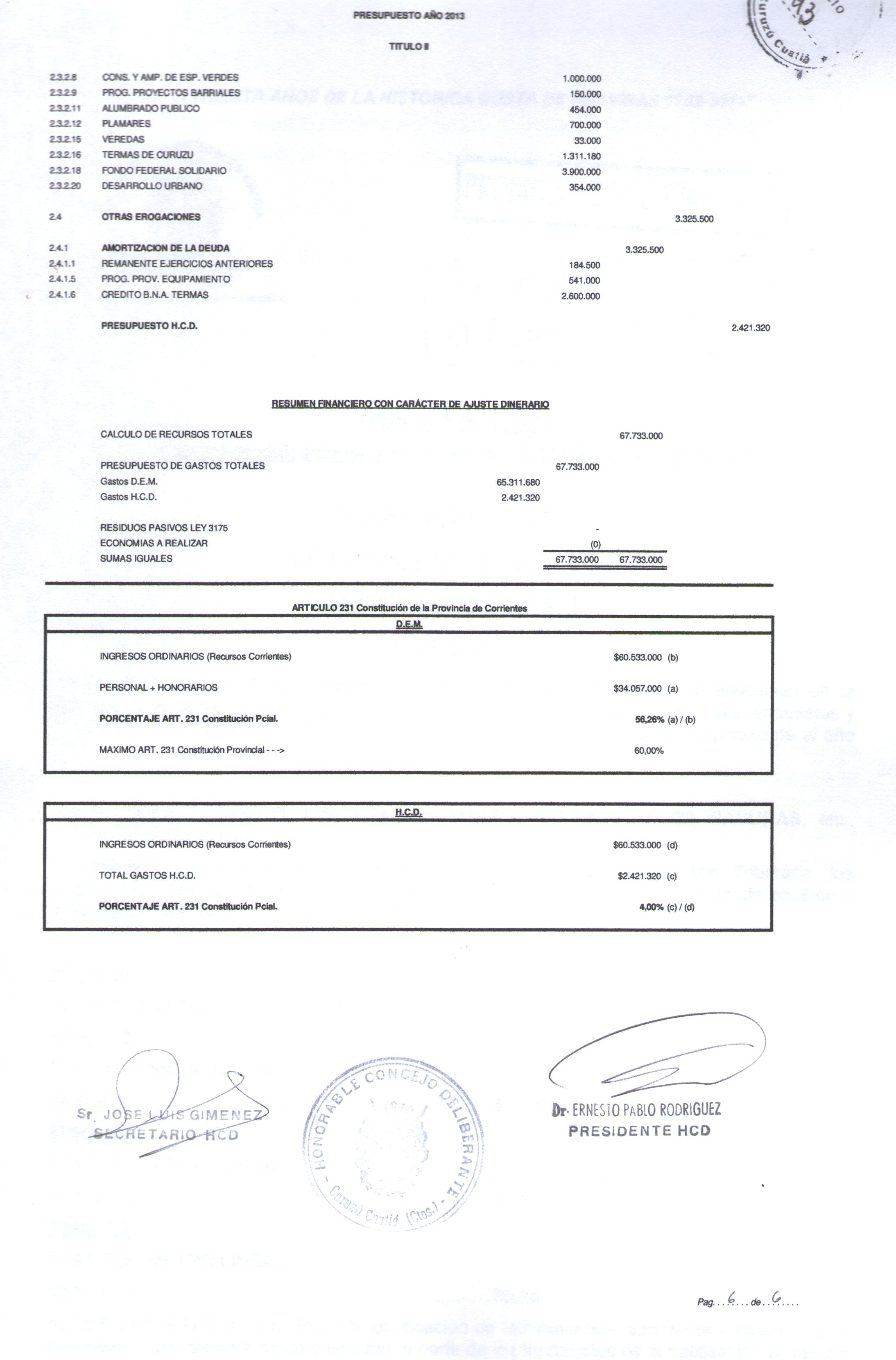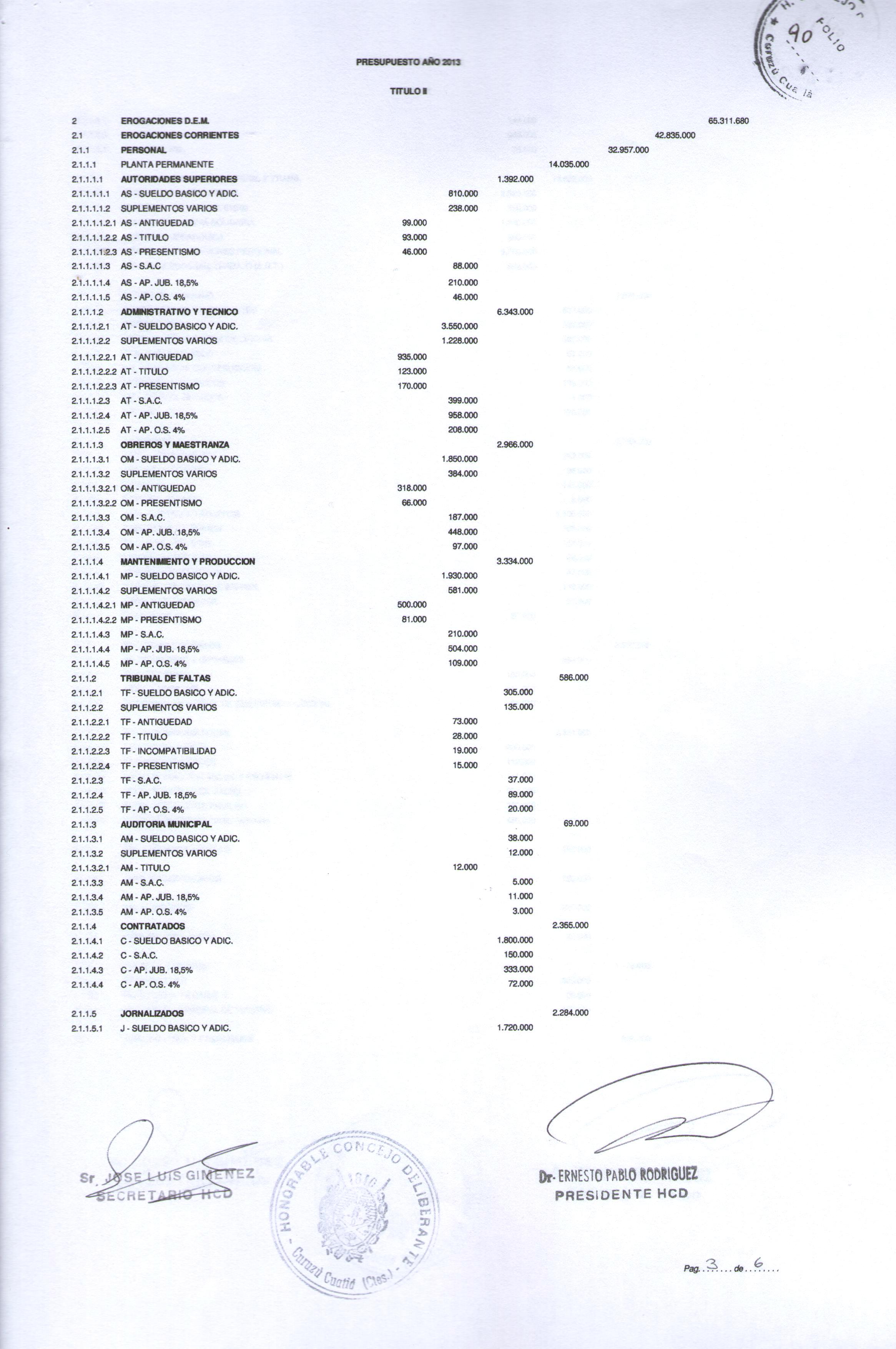 Art.1º.- APROBAR el PRESUPUESTO GENERAL DE LA MUNICIPALIDADDE CURUZU CUATIA para el ejercicio 2013, que obra como Anexo de la presente.