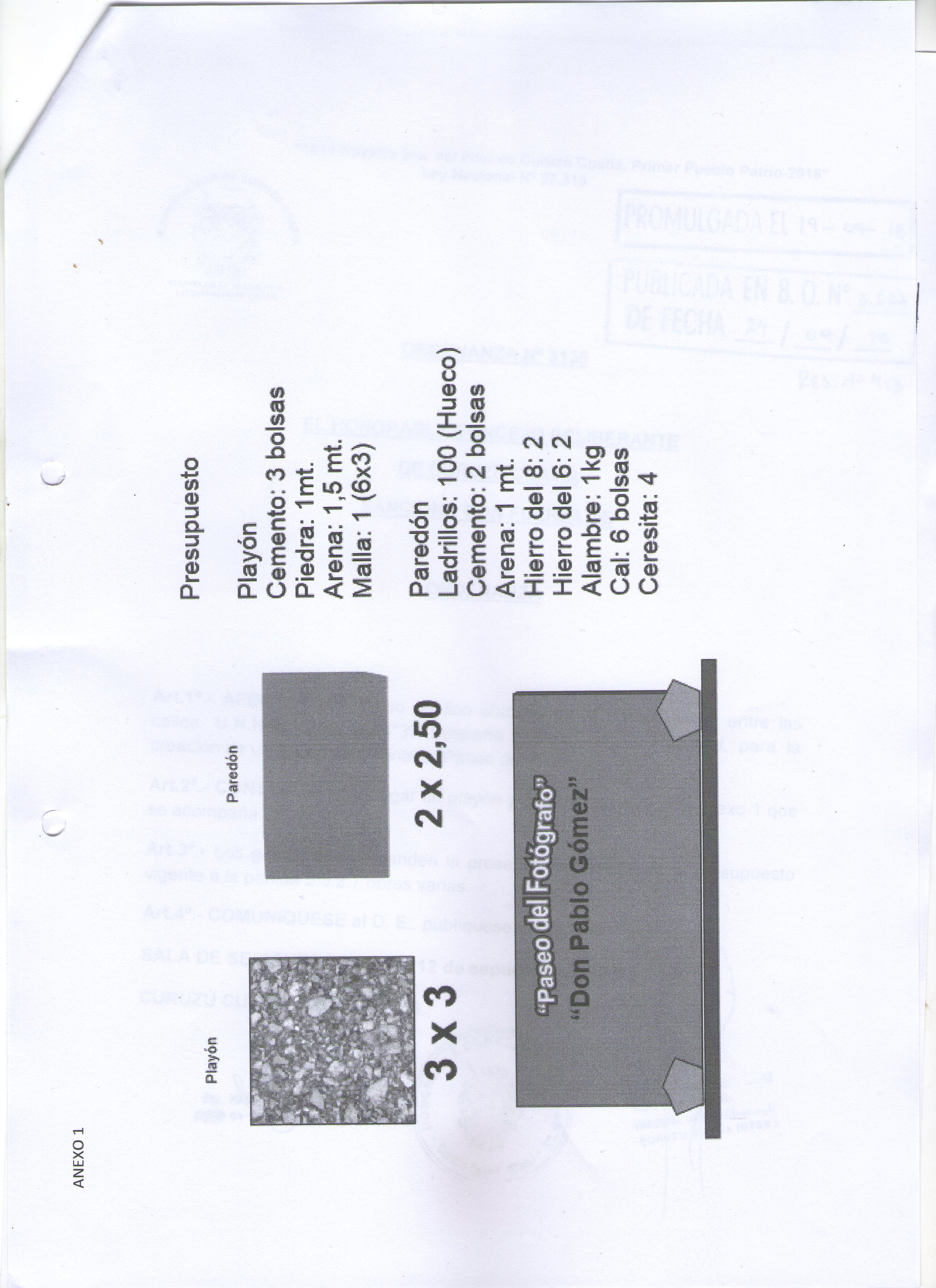 Art.2º.- CONSTRUIR en el lugar un playón y paredón conforme al anexo 1 que se acompaña.
