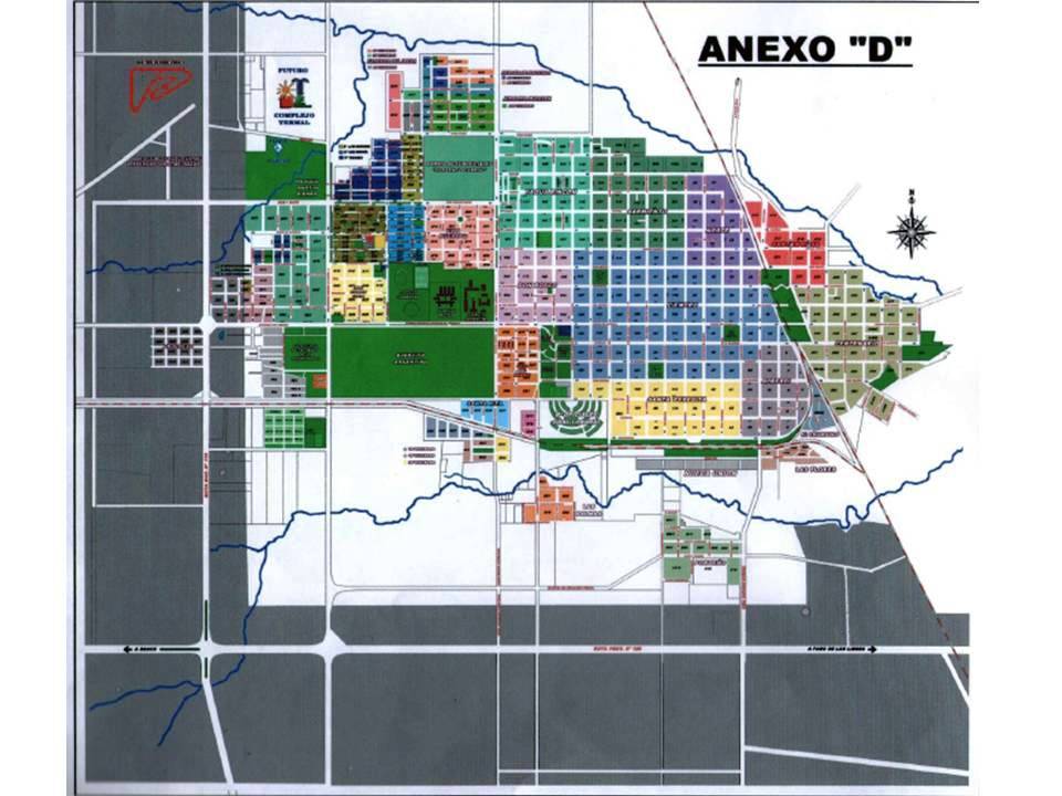 “La zona comprende la franja de 300 metros hacia el lado Este y 1.000 metros del lado Oeste de la Ruta Nacional N° 119 en el trayecto que corresponde a la trama urbana que va de Norte a Sur, y la franja de 300 metros hacia el norte de la Ruta Provincial N° 126 y 1000 metros al Sur de la misma, en el trayecto que corresponde a la trama urbana que va de este a oeste. También comprenden los predios de la Sociedad Rural, Frigorífico Ganadero, ubicados entre la Avenida Mariano Moreno, Ruta Provincial N° 126, Arroyo Castillo y Vías del Ferrocarril y los inmuebles individualizados con las Adremas E1-2851-3 y E1-2850-3 ubicados sobre la Ruta Provincial N° 126. De conformidad al croquis que como Anexo “D” forma parte de la presente.”