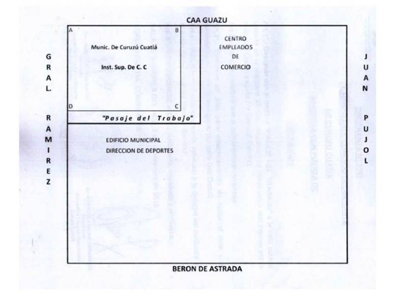 Art.1°.- Designar con el nombre “PASAJE DEL TRABAJO” a la calle pública ubicada en la manzana 37 con circulación de mano única con ingreso por la calle Caá Guazú y salida por General Ramírez.
