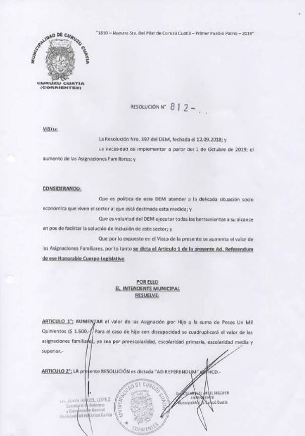 “1810-Nuestra Sra. del Pilar de Curuzú Cuatiá, Primer Pueblo Patrio-2019” Ley Nacional Nº 27.315