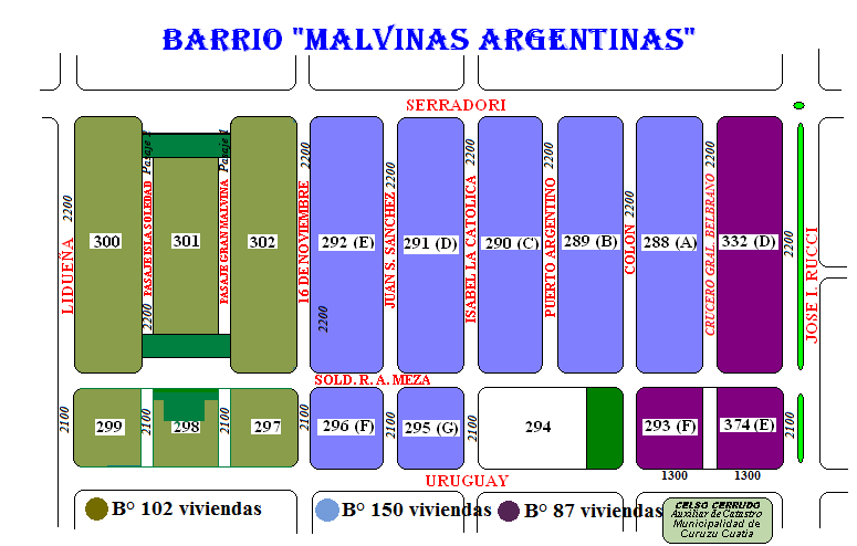 Art.1º.- DESIGNAR con el nombre de “RAMON ANTONIO MEZA” a la plazoleta del Barrio 102 Viviendas que se describe: espacio verde ubicado en la Manzana “C” de la Mensura 2071-L (hoy Mz 299) intersección de las calles Francisco Lidueña y Ramón Antonio Meza, según fotocopia del Plano que como Anexo 1 se adjunta a la presente y forma parte integrante de la misma.