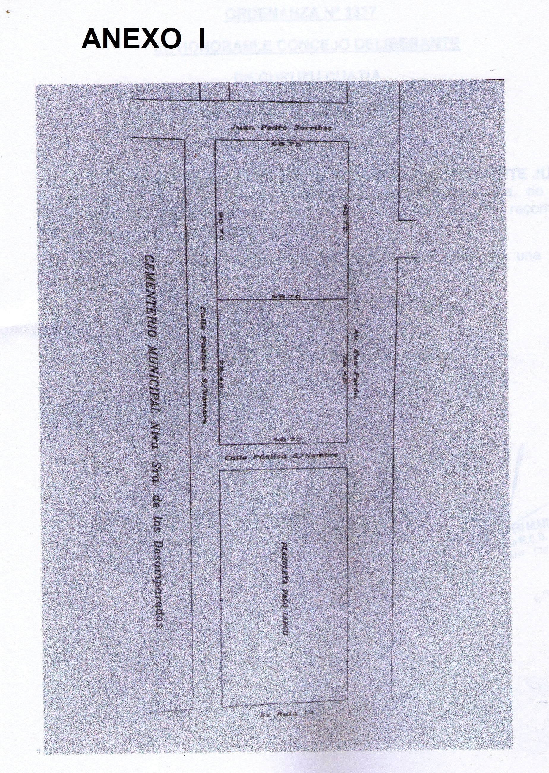 Art 1°. - DESIGNAR con el nombre de “DIACONO PERMANENTE JUAN GAUNA” a la calle ubicada al frente del Cementerio Ntra. Sra. de los desamparados, desde Ex Ruta 14 al Este, hasta donde finaliza su recorrido, según plano que se acompaña como Anexo I.-