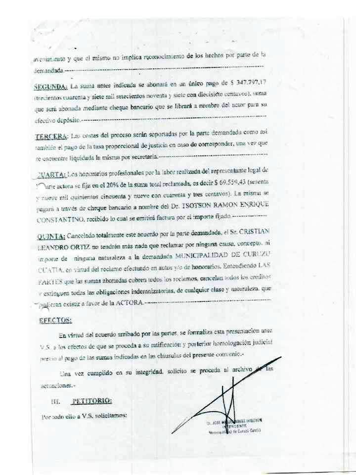 Art. 1º.- AUTORIZAR al D.E.M., por sí o por apoderado, a conciliar y suscribir el “ACUERDO CONCILIATORIO, TRANSACCIONAL Y DE PAGO” que obra como ANEXO de la presente, en los términos del mismo. -