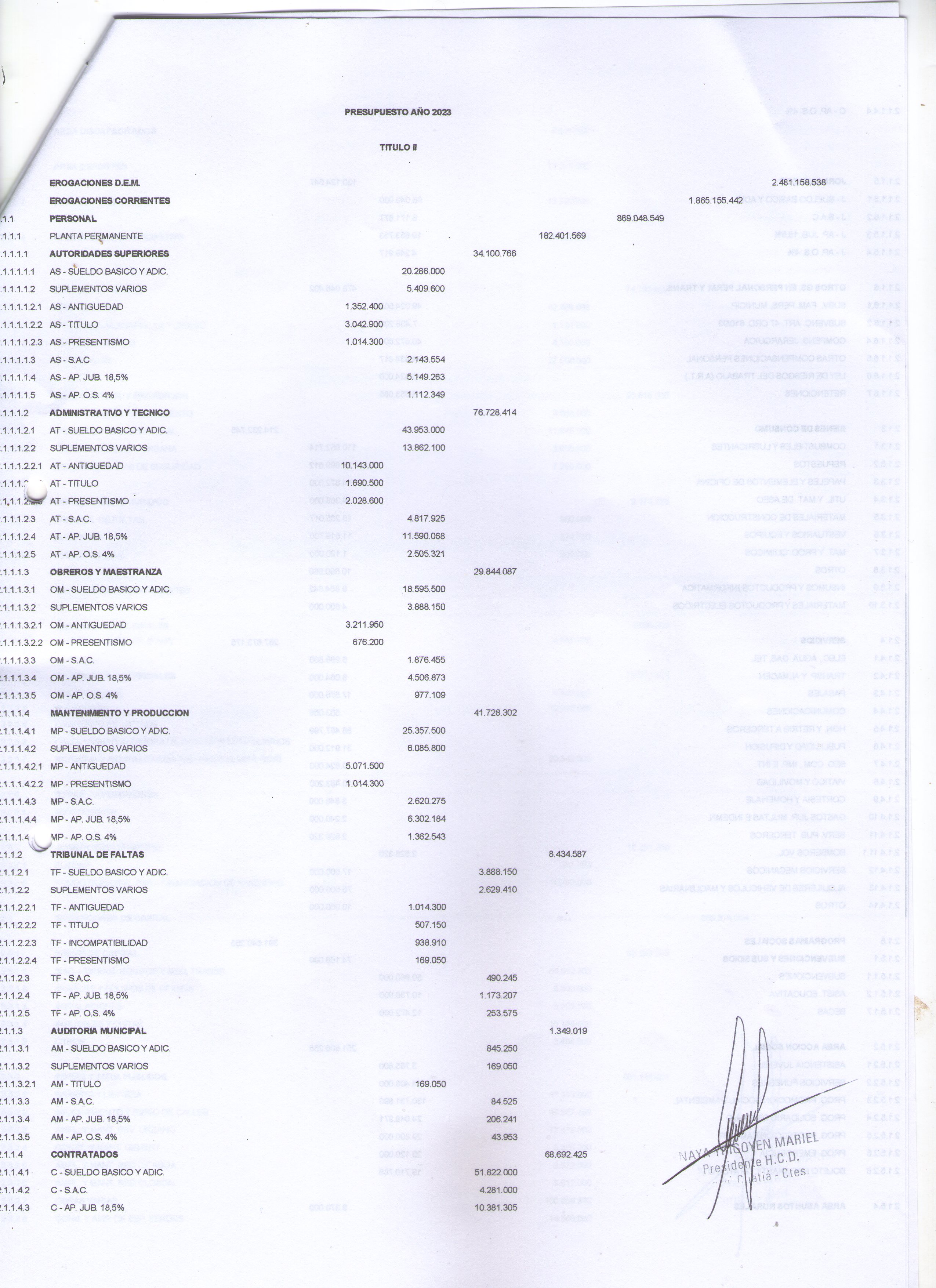 ART. 1°. - APROBAR el PRESUPUESTO DE GASTOS de la Municipalidad de Curuzú Cuatiá, para el ejercicio 2.023, que obra como Anexo I de la presente. -